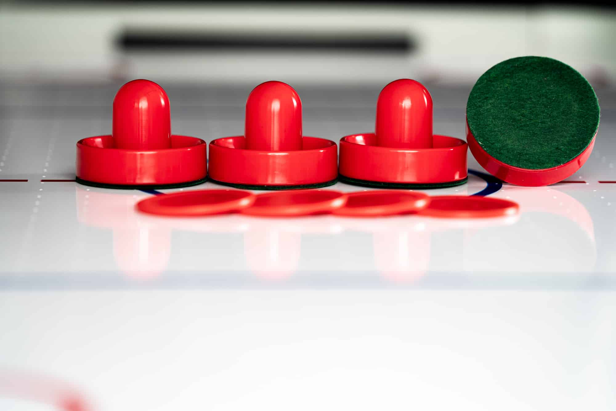 Hockey Pusher – 4 Stück (Rot / Durchmesser 95 mm / Höhe 65 mm / 52 g / ABS-Material),