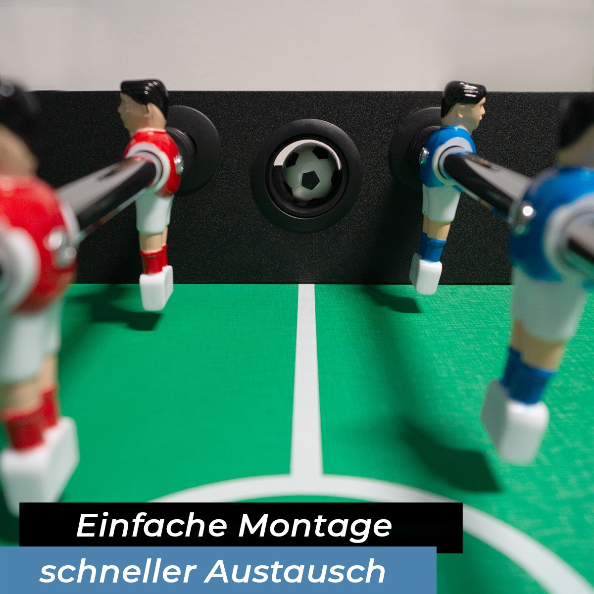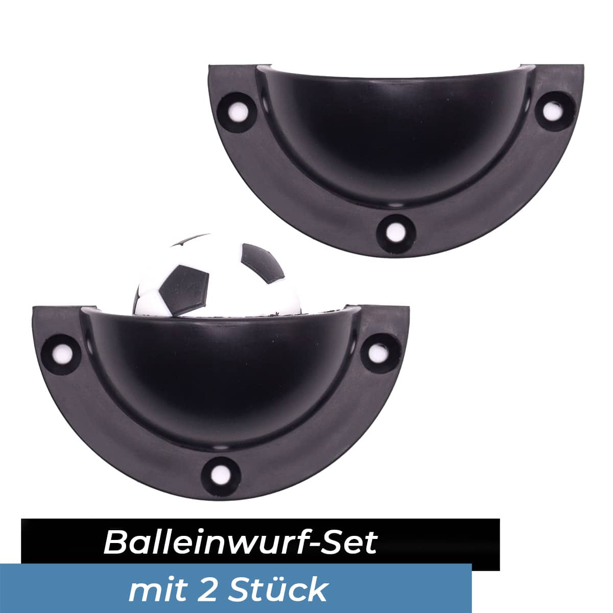 Der Balleinwurf auf das Kicker-Spielfeld erfolgt beidseitig mittels einer Ball-Einwurfschale.