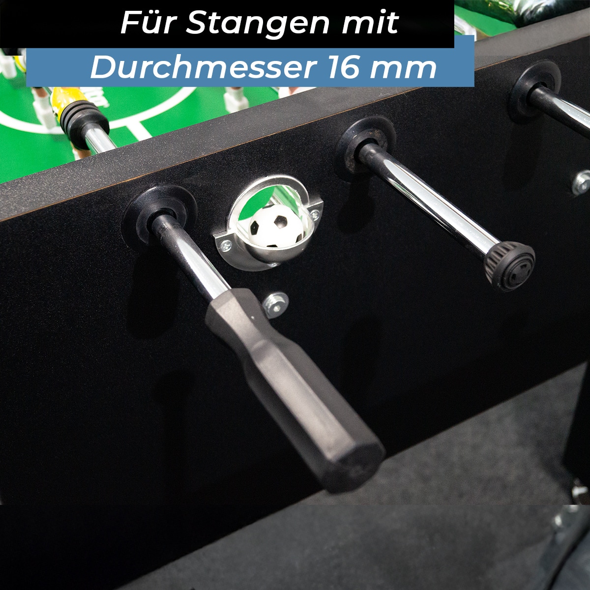 Der Griff passt auf alle gängigen 16 mm Kickerstangen und ist somit für alle Standard Tischfußball Modelle geeignet.
