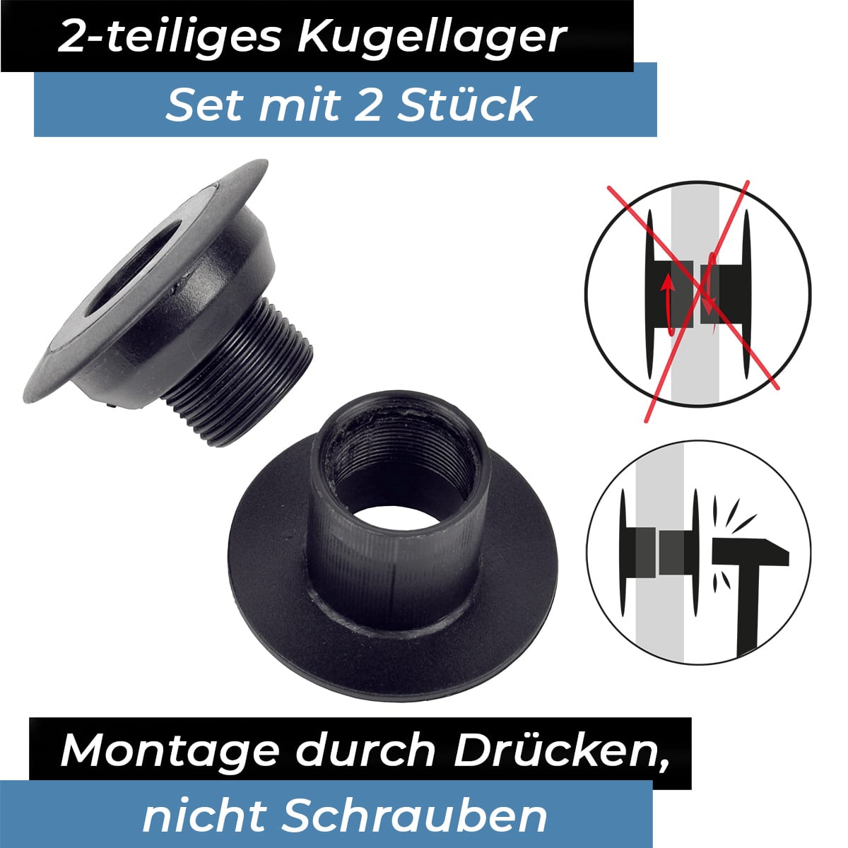fest miteinander verbunden werden. Passend für Wandstärken von 37 – 43 mm. Es handelt sich hierbei um äußerst robuste und langlebige Kugellager aus ABS Kunststoff, welche gerade bei intensivem Bespielen des Tisches nötig sind. Durch die Bandito Kugellager wird ein angenehmes und schnelles Spiel ermöglicht, denn hierdurch können die Stangen ganz leicht gleiten. Geeignet für 16 mm Hohl- und Vollstahl-Stangen.