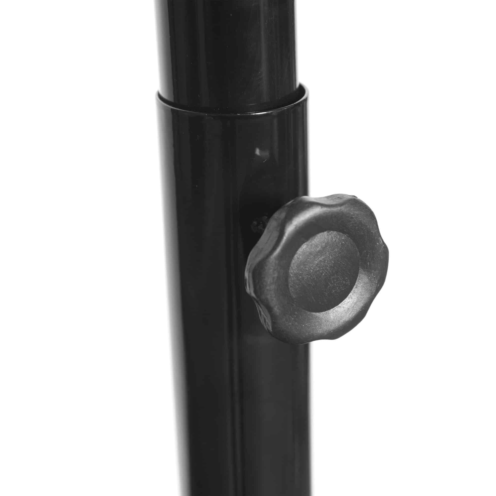 Der starke Metallring, der das stabile Allwetternetz umspannt, erfüllt den Wettkampfdurchmesser von 45 cm und ist mit einer Metallplatte an der 22 mm dicken, rippenverstärkten Rückwand fixiert. Das attraktiv gestaltete Backbord ist Rückseitig mit einer zusätzlichen 3-fach Metallstrebe verstärkt. Das mit zusätzlichen Spannstreben mit dem Standfuß verbundenen dreigeteilte ca. 5 cm starke pulverbeschichtete Rohr ist höhenverstellbar. Damit lässt sich die Korbhöhe (Metallring) von 190 cm bis 260 cm variabel verstellen. Ideal für Groß und Klein!