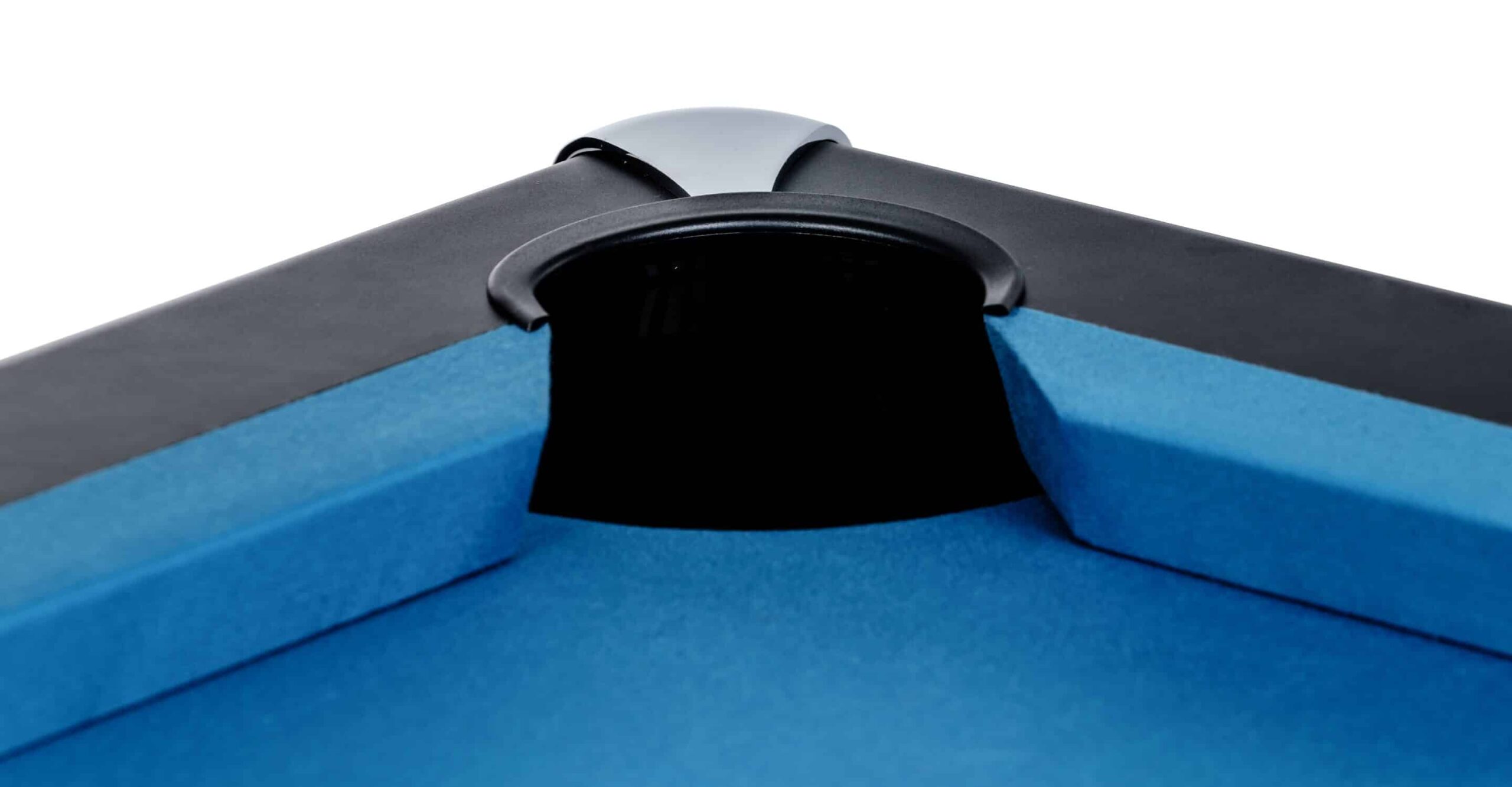 Das electric-blue-farbene Billardtuch ist sehr strapazierfähig und garantiert präzisen Kugellauf. Der Billardtisch ist mit geräuscharmen Einfalltaschen (Pockets) ausgestattet. An der Stirnseite ist zusätzlich eine nützliche Ballablage integriert. Das hochwertige, schwarze Außendekor ist nicht nur schlag- und kratzfest sondern auch temperaturbeständig. Mit der optional erhältlichen 2-teiligen Abdeckplatte verwandeln Sie Ihren Billard BlackPool schnell in einen Ess-, Arbeits- oder Konferenztisch.