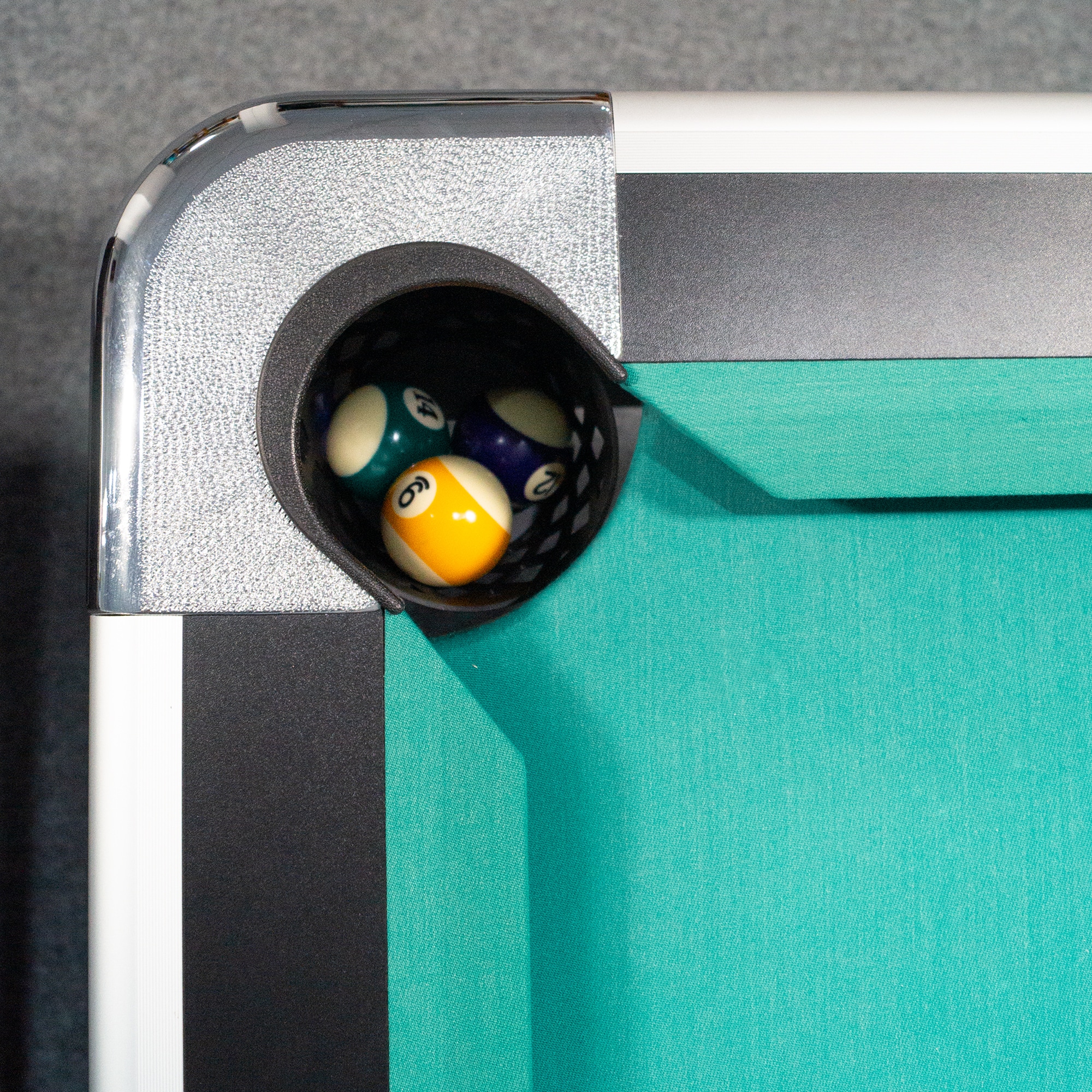 Der Orlando-Billard wird in Europa produziert. Die Wertarbeit ist an den robusten Balkenfüßen, der schlagfesten Oberfläche sowie an der Alu-Rundumschutzleiste sofort erkennbar. Von Haus aus ist der Orlando mit robusten Balleinfalltaschen ausgestattet, kann aber auf Wunsch auch mit einem Ballrücklaufsystem ausgestattet werden. Die Banden und Spielfläche sind standardmäßig mit hochwertigem Eurospeed Tuch in blau-grün bezogen. Sonderfarben sind auf Anfrage erhältlich. Optional gibt es für alle 3 Tischgrößen eine passende 2-teilige Abdeckplatte.