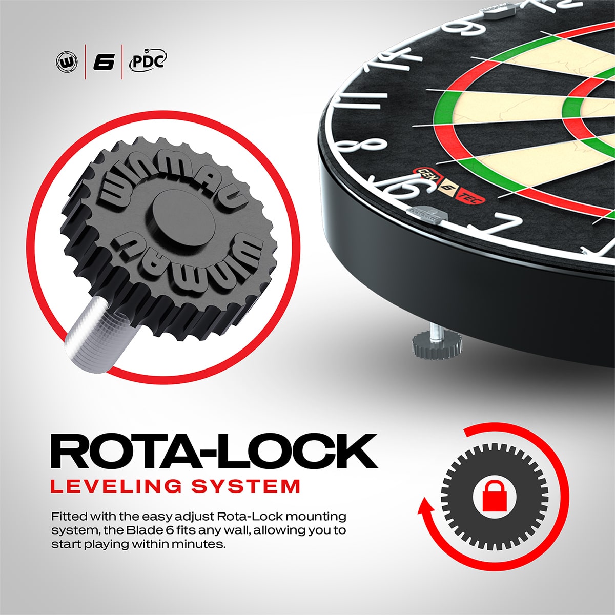 Lieferumfang: Blade 6 Dartboard, Surround, Oche Strip (Abwurflinie), 2 x Sets Winmau Steel Darts (19 gr., Schwarz)