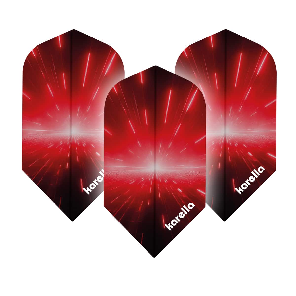 Attraktive Karella Flights in Slim Form. Im Vergleich zur Standard Form sind die Slim Flights deutlich schmäler. Dies sorgt für eine schnellere, direkte Flugkurve der Darts. Zudem könnten durch die schmalen Flights die Darts am Board eng beieinander platziert werden.