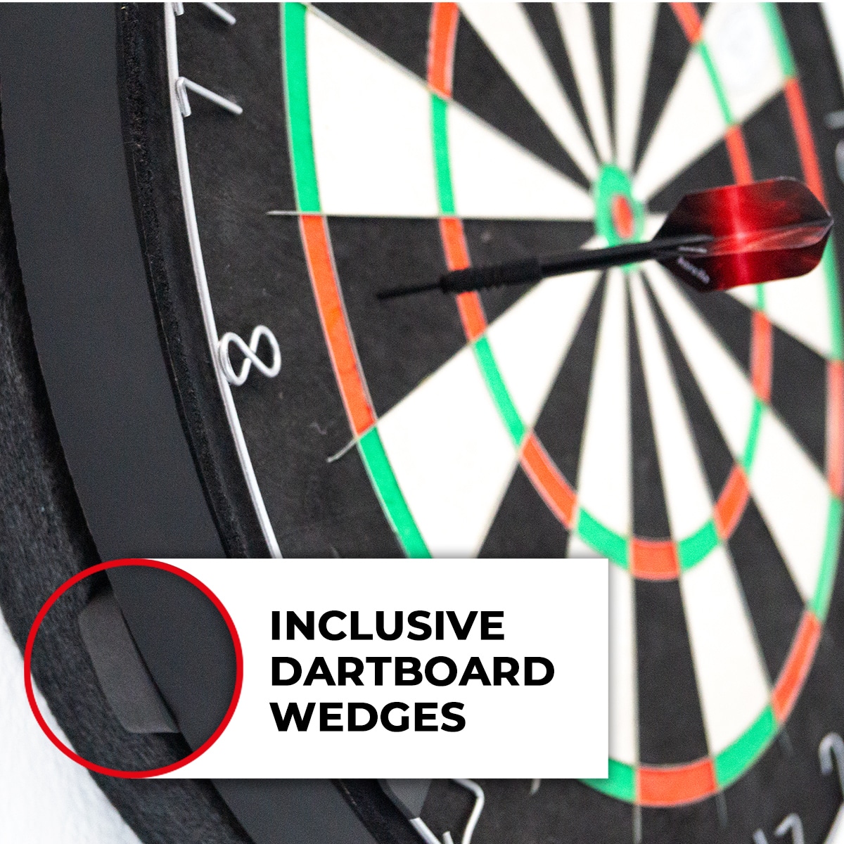 Lieferumfang: Schallschutzkern, Schallschutzring Ø45 cm, 3 Dartboard Justierkeile, Dübel und Schrauben. (Dartboard ist nicht im Lieferumfang enthalten)