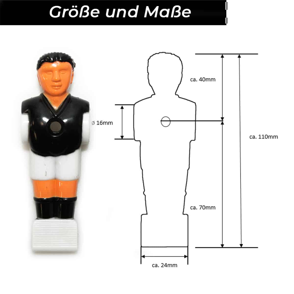 Bandito – Kickerfigur Profi schwarz/weiß für 16 mm Kickerstangen (11 St.)
