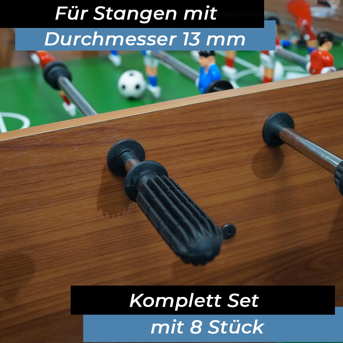 Das Komplettset besteht aus 8 Griffen und ist somit zur Ausstattung von je 4 Spielstangen pro Spielerseite.