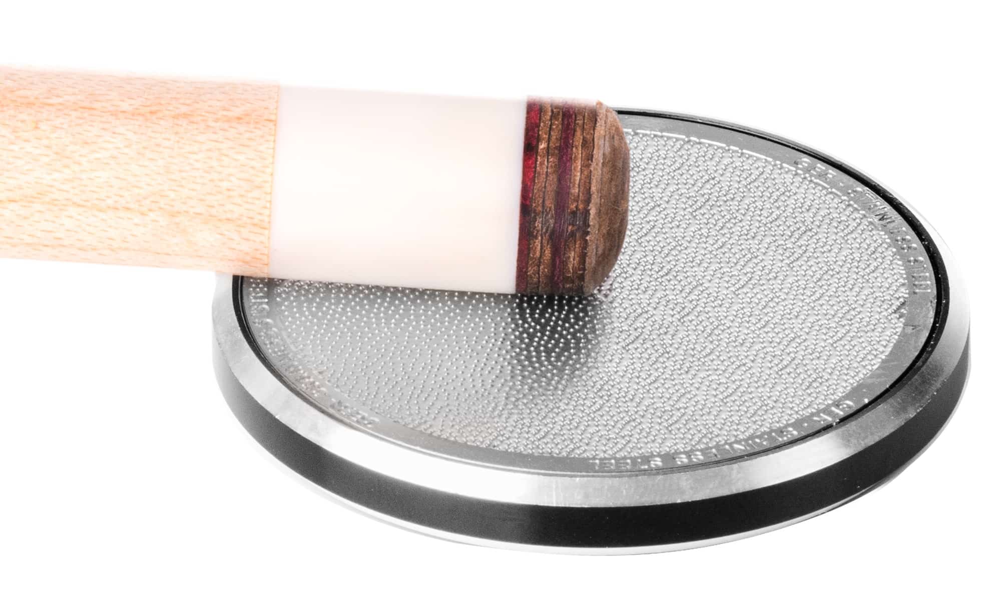 Der Ledertrimmer Robertson Maxima ist das perfekte Tool für ihr Klebeleder. Nichts ist beim Anspielen der Spielkugel so entscheidend wie eine perfekt geformte Lederspitze. Der 2-fach Trimmer besteht rückseitig aus glasperlengestrahltem reinem Edelstahl das im High-Tech-Verfahren verschleißfrei aufgeraut wurde. Diese Fläche dient dazu, das Klebeleder individuell an jeder Stelle aufzurauen und zu bearbeiten.
