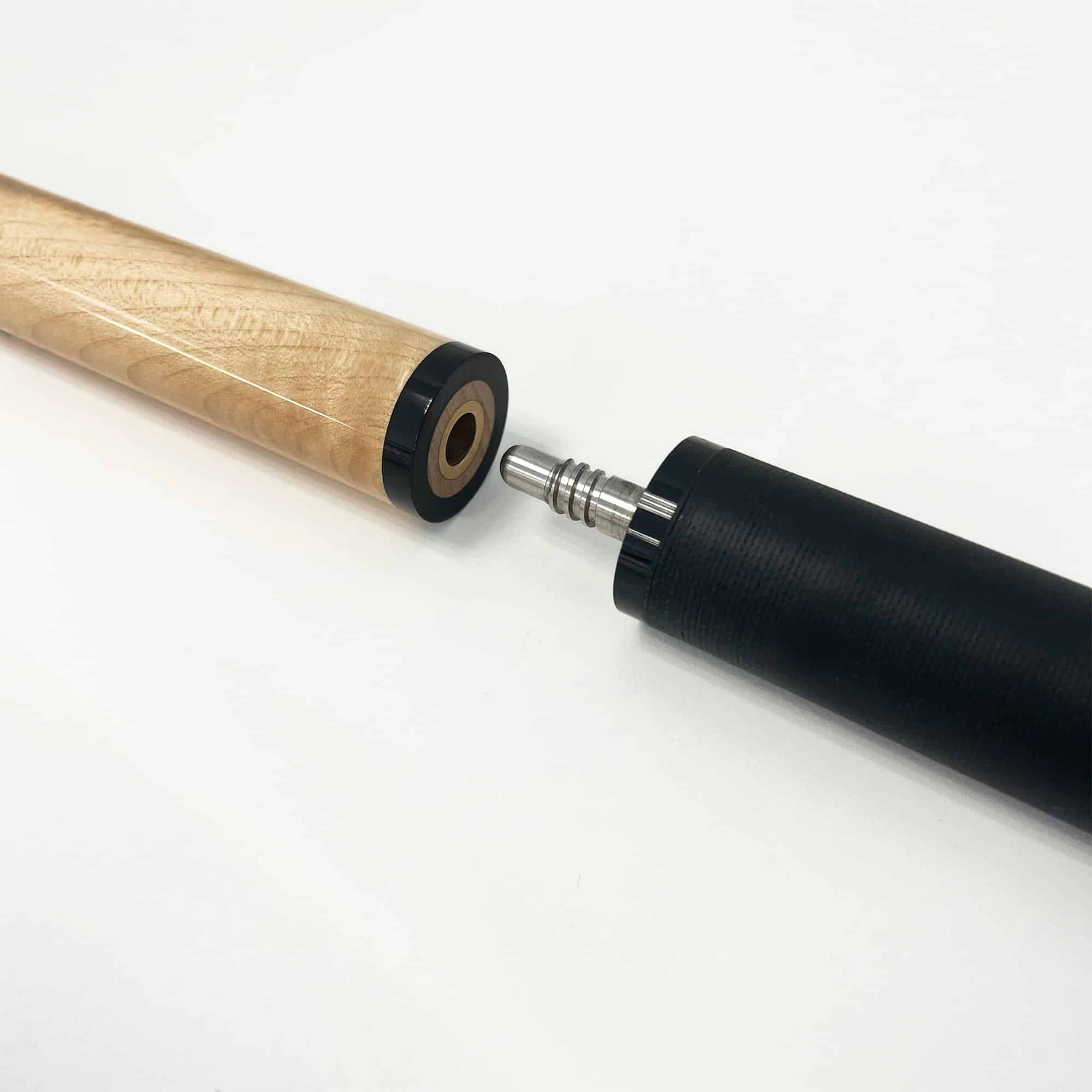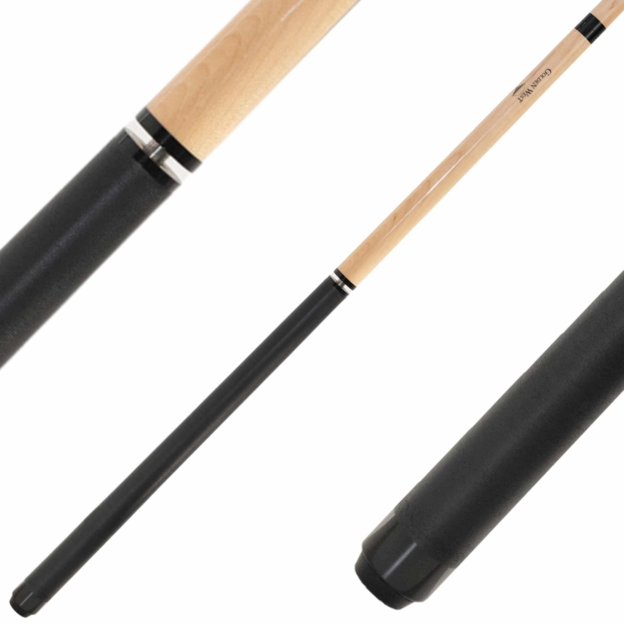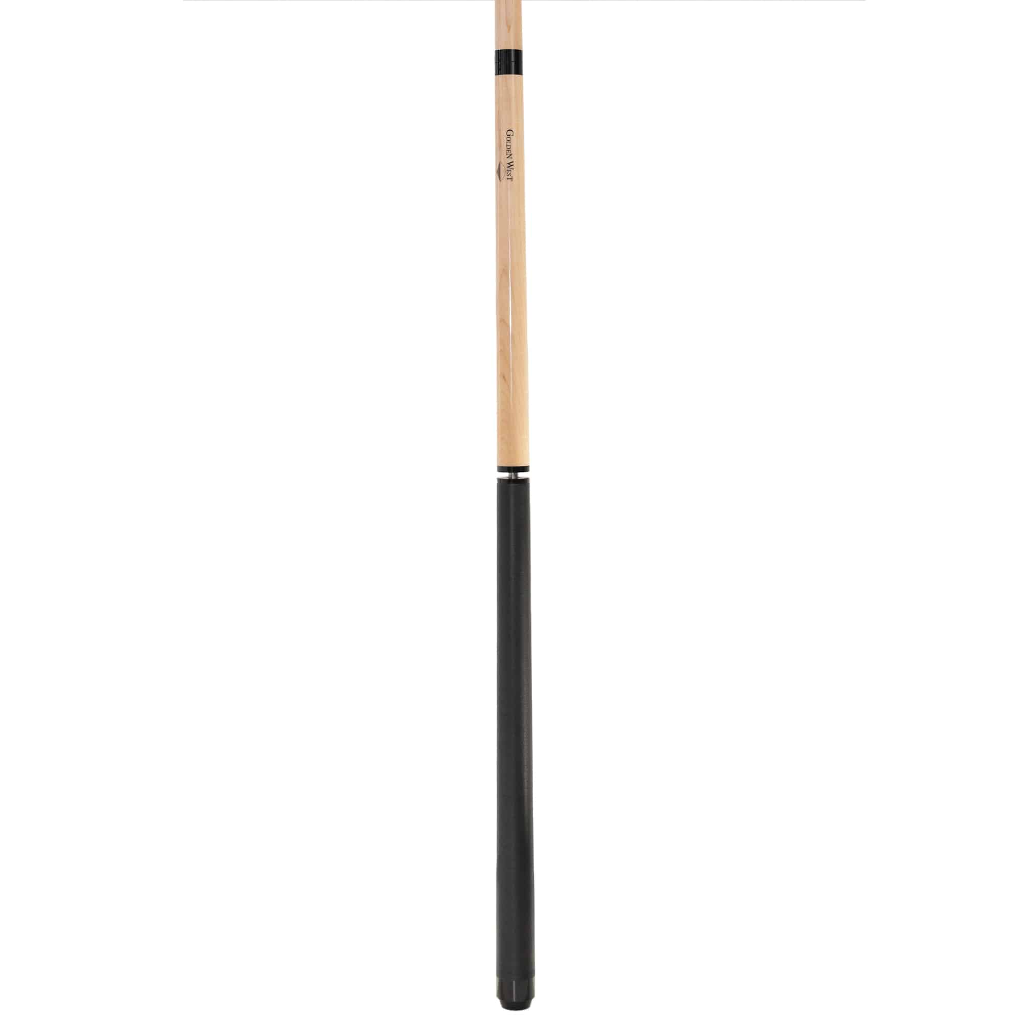 Jeder Spieler weiß wie wichtig ein harter powervoller Anstoß ist und oftmals bereits über den Sieg entscheidet. Der Golden West Break/Jump Queue erfüllt alle professionellen Voraussetzungen. Das Oberteil ist aus hartem verzugsfreiem Ahornholz mit konischem Schliff. Die bruchsichere 14 mm Ferrule mit Tip ist aus extrahartem schwarzem Kunstharz gefertigt. Diese Komponenten erhöhen erheblich die Stoßenergie beim Anstoßbreak. Der 3-teilige Queue hat ein Unterteil von 44 cm. Das Jump Mittelteil ist 30 cm und zusammen mit dem Oberteil ergibt sich die für Jump-Stöße ideale Länge von 104 cm. Dadurch dass die Gewichtsbalance auf das Vorderteil geht, erleichtert es maßgeblich den Jump Effekt auf den Spielball. Beide Gewindeverbindungen sind mit einem praktischen, patentierten Quick Joint versehen. Das Unterteil ist im Griffbereich mit einfarbig schwarzem Leinenband ausgestattet.