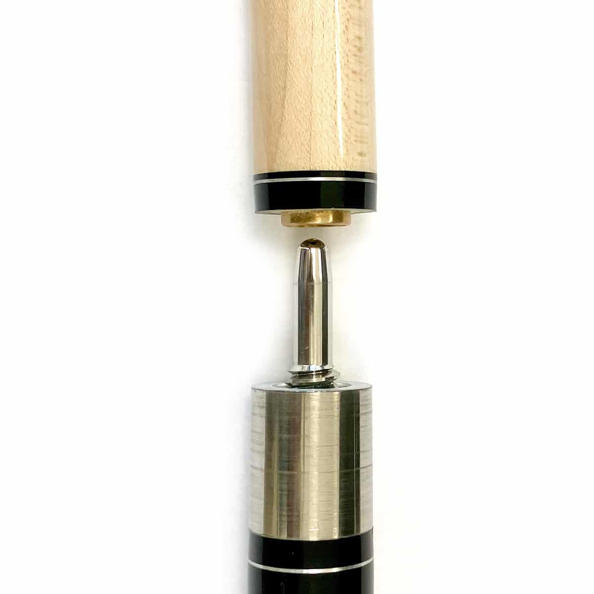 Durch das harte konisch geschliffene Ahorn-Oberteil in Verbindung mit der Ferrule aus Bakelit erreicht man eine maximale Anstoßpower auf den Spielball. Der Durchmesser der braunen harten Phenolharz Spitze ist 13,5 mm. Der Parker Queue ist aber auch für Jump-Stöße perfekt geeignet. Dank dem Uni-Lock Quick-Joint Gewinde ist der Break-Cue in Sekunden zu einem 105 cm langem Jump-Cue umgewandelt.
