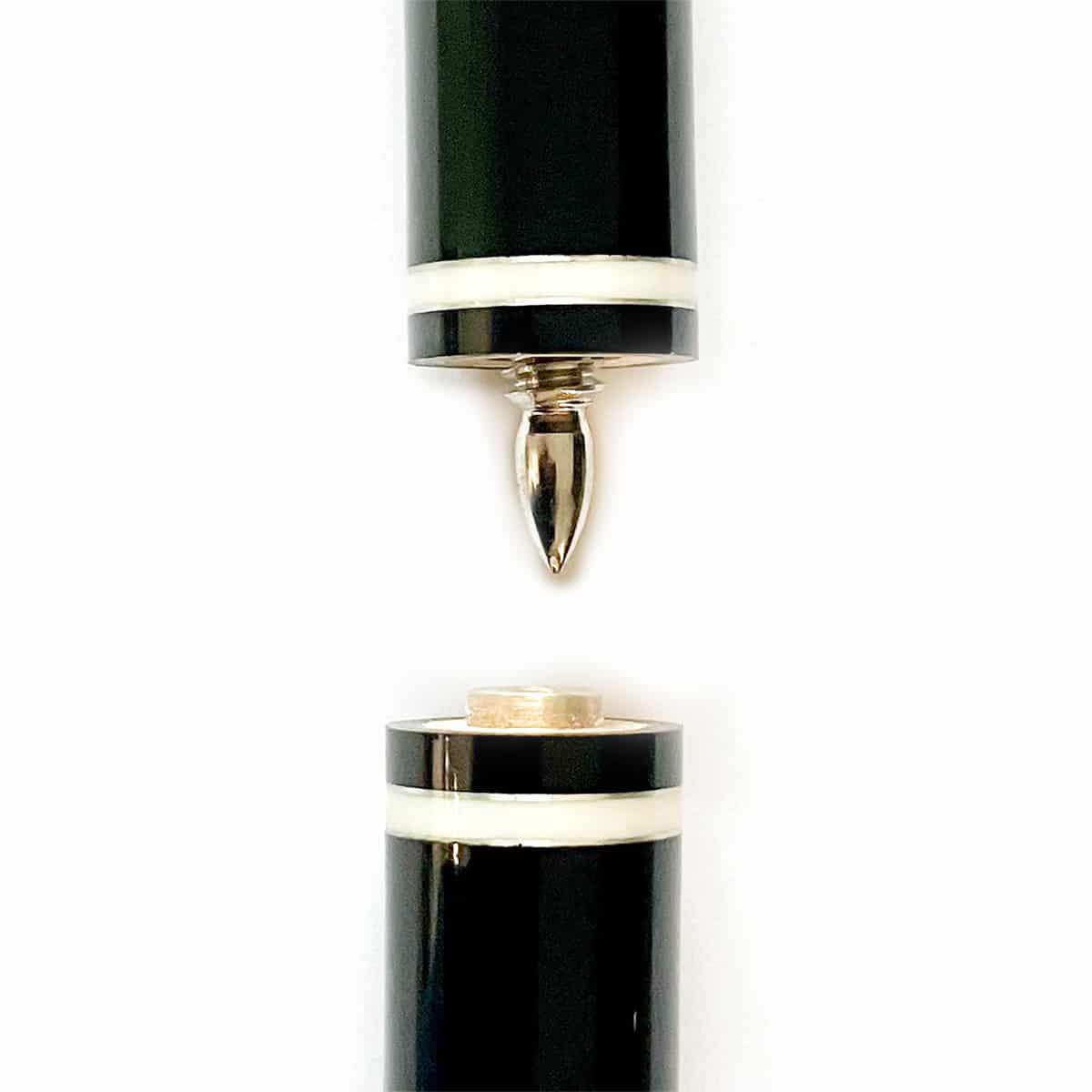 Auch optisch ist der „Zauberqueue“ gut gelungen, denn elfenbeinfarbige Zierringe verzieren das schwarz lackierte Unterteil.