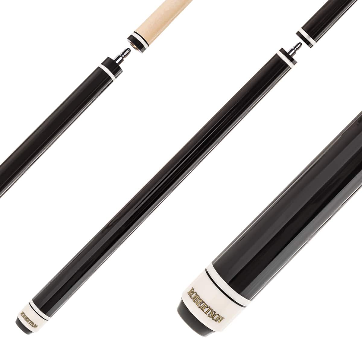 Durch das harte konisch geschliffene Ahorn-Oberteil in Verbindung mit der Ferrule aus Bakelit erreicht man eine maximale Anstoßpower auf den Spielball. Der Durchmesser der braunen harten Phenolharz Spitze ist 13,5 mm. Der Robertson Queue ist aber auch für Jump-Stöße perfekt geeignet. Dank dem Uni-Lock Quick-Joint Gewinde ist der Break-Cue in Sekunden zu einem 105 cm langem Jump-Cue umgewandelt. Durch die optimale Länge und der vorderlastigen Gewichtsverteilung kann man mit dem 279 g. leichtem Jumper nicht nur kurze, höhere sondern auch längere Jumps des Spielballs ausführen.
