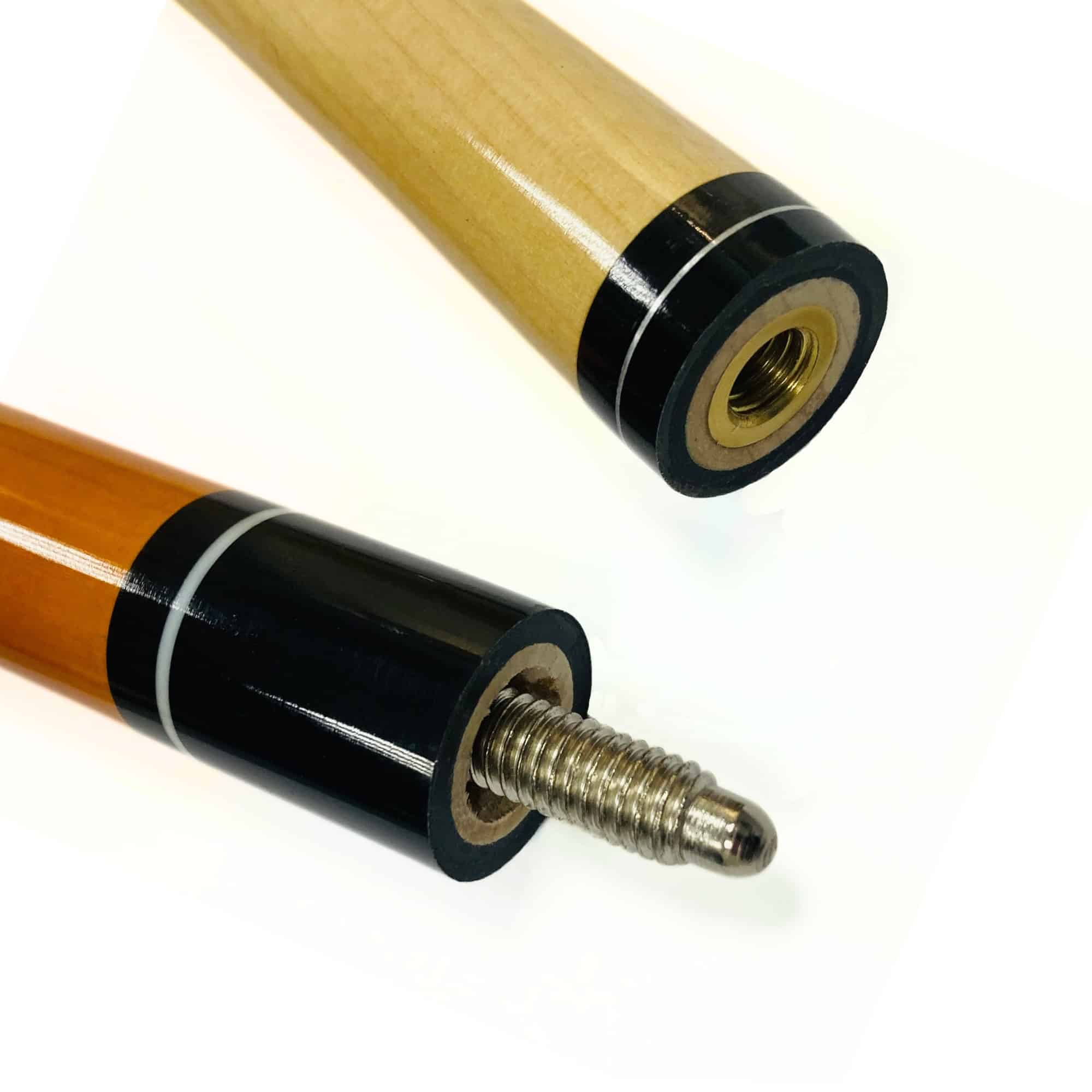 Das Modell Eight-Ball in braun ist für Spieler die auf aufwändiges Dekor weniger Wert legen. Lediglich unterhalb vom Nylongriffband ist eine kleine 8-Ball Kugel als Markenzeichen aufgedruckt. Das Oberteil besteht bereits aus Ahorn was in dieser Preisklasse eher selten verwendet wird. Eight Ball ist ein Queue mit guten Spieleigenschaften und daher auch für Einsteiger oder Hobbyspieler sehr zu empfehlen. Queuespitze 13 mm Klebeleder, Queuelänge 147 cm 2-teilig.