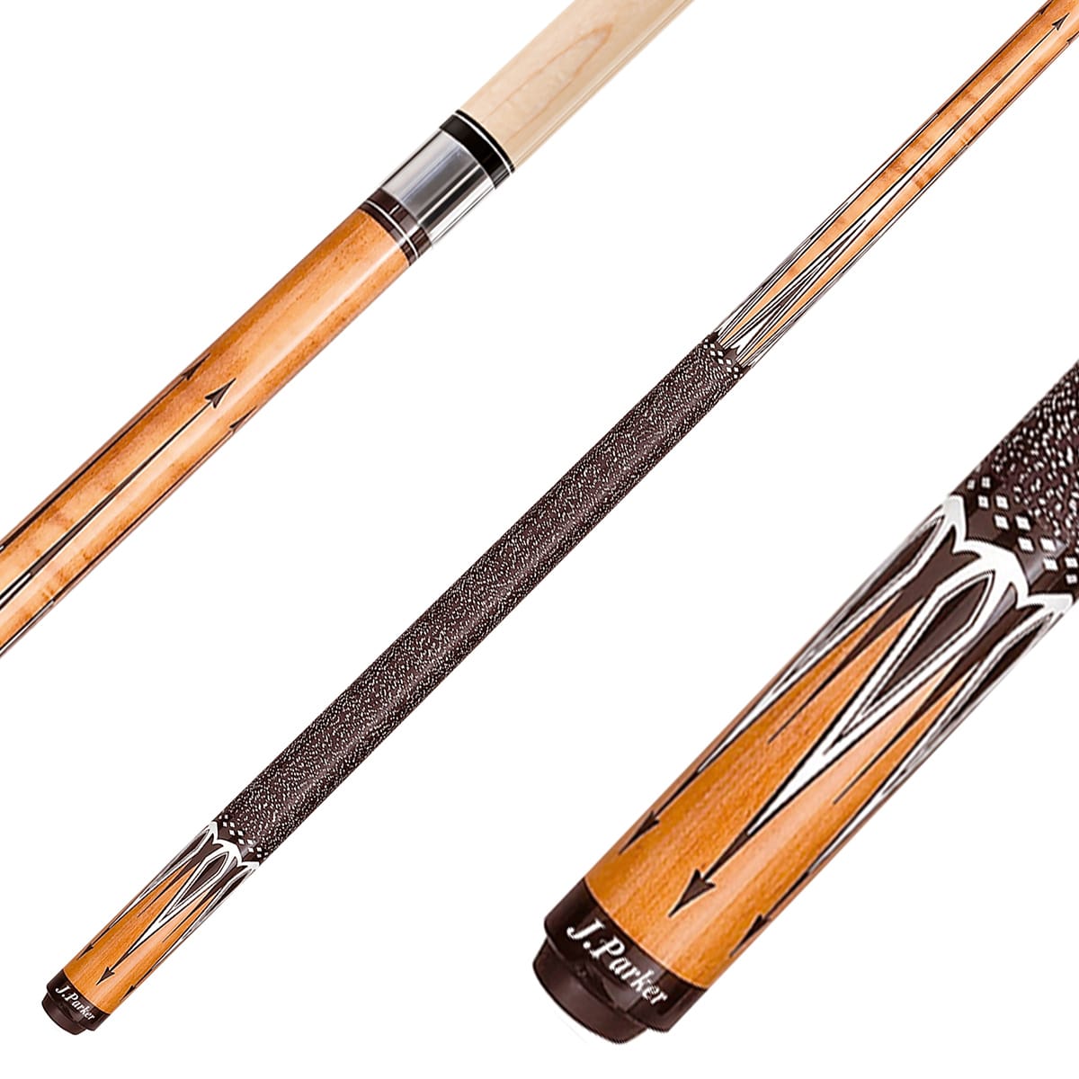 Die beliebte Original J.Parker JP-Serie besticht durch hohe Qualität und erfüllt alle Voraussetzungen eines Profi-Cues und das bei einem super Preis/Leistungsverhältnis. Entwickelt für Spieler, die neben der professionellen Spielqualität auch auf ein schönes Design Wert legen. Alle Modelle der JP-Serie stechen hervor durch die geschmackvollen Edelholz-Dekore und schönen Verzierungen im Unterteil. Das mittelharte kanadische Ahornoberteil ist mit einer Fiber Ferrule und einer Mehrschicht Lederspitze mit 12,75 mm ausgestattet. Das Profi-Klebeleder ist bereits perfekt geformt und spielbereit aufgeraut. Die Verbindung mit dem Unterteil erfolgt durch einen Bullet Quick-Lock Schnellverschluss-System. Der Griffbereich ist mit einem hochwertigen schwarz/weißen Leinenband versehen. Die Gesamtlänge des 2-teiligen Queue ist 147 cm. Die J. Parker Serie JP- 1 bis JP-7 bieten eine super Auswahl an unterschiedlicher Optik und werden inklusive einem 2-teiligen Gewindeschutz ausgeliefert.