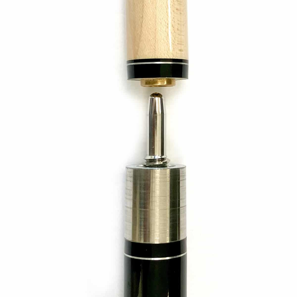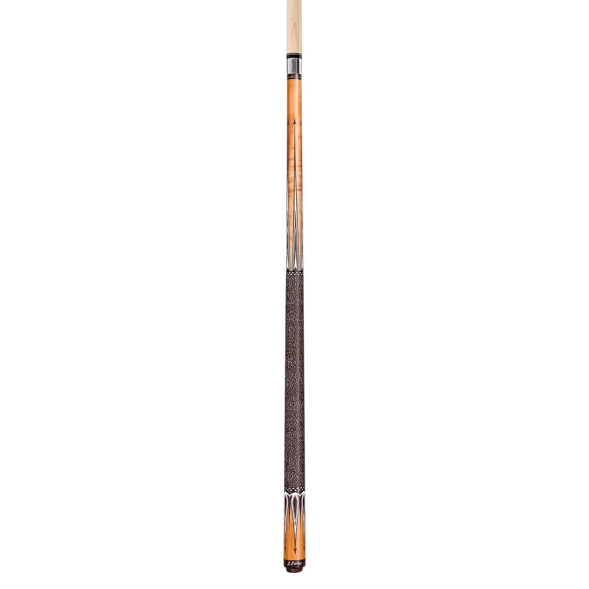 Unglaublich wie kreativ und mit einzigartig geschmackvollen Design diese Pool-Queues verarbeitet wurden. Mit viel Liebe zum Detail werden in der Produktion die ausgewählten Ahorn-Hölzer mit den edlen Materialien und Edelholzdekoren sorgfältig mit viel Handarbeit miteinander verbunden. Das Oberteil ist sehr fein gemasert und von der Flexibilität als „medium-hart“ eingestuft. Damit eignet sich der Queue nicht nur als „Spielqueue“, sondern auch gleichzeitig sehr gut zum „Anstoßen“ (sog. Break). Wie es der Großteil der Profispieler bevorzugt, wurde auch bei J. Parker der Griffbereich mit einem hochwertigen Leinenband umwickelt.