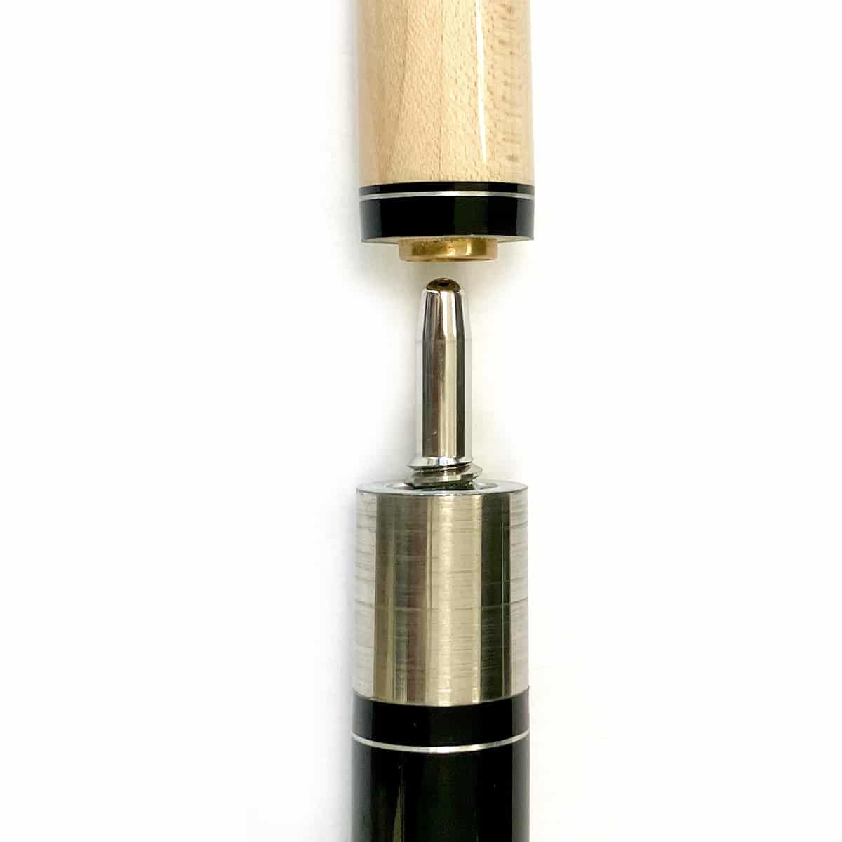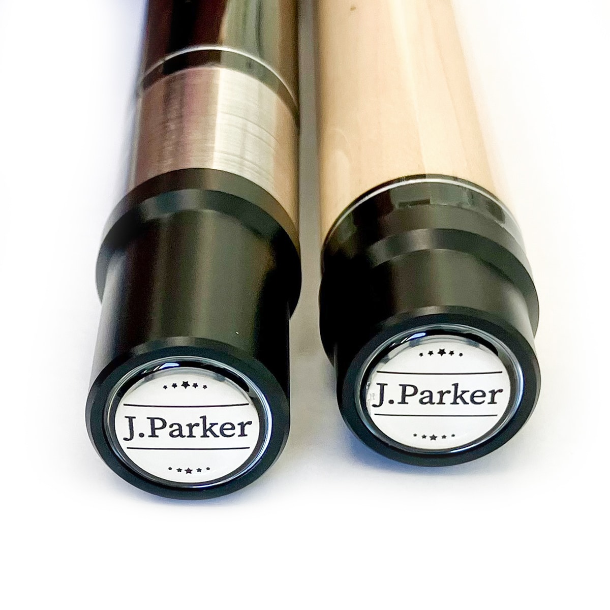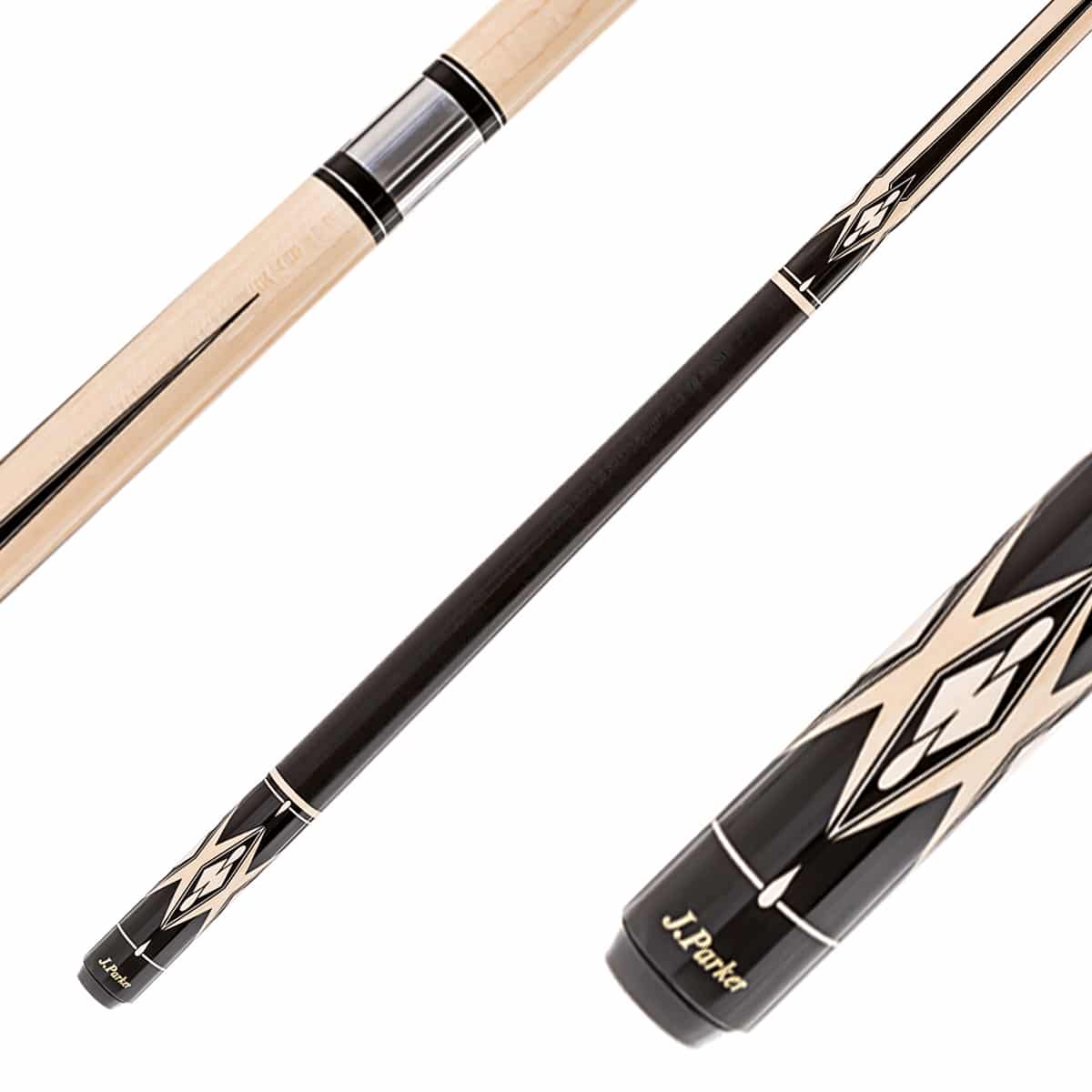Unglaublich wie kreativ und mit einzigartig geschmackvollen Design diese Pool-Queues verarbeitet wurden. Mit viel Liebe zum Detail werden in der Produktion die ausgewählten Ahorn-Hölzer mit den edlen Materialien und Edelholzdekoren sorgfältig mit viel Handarbeit miteinander verbunden. Das Oberteil ist sehr fein gemasert und von der Flexibilität als „medium-hart“ eingestuft. Damit eignet sich der Queue nicht nur als „Spielqueue“, sondern auch gleichzeitig sehr gut zum „Anstoßen“ (sog. Break). Wie es der Großteil der Profispieler bevorzugt, wurde auch bei J. Parker der Griffbereich mit einem hochwertigen Leinenband umwickelt.