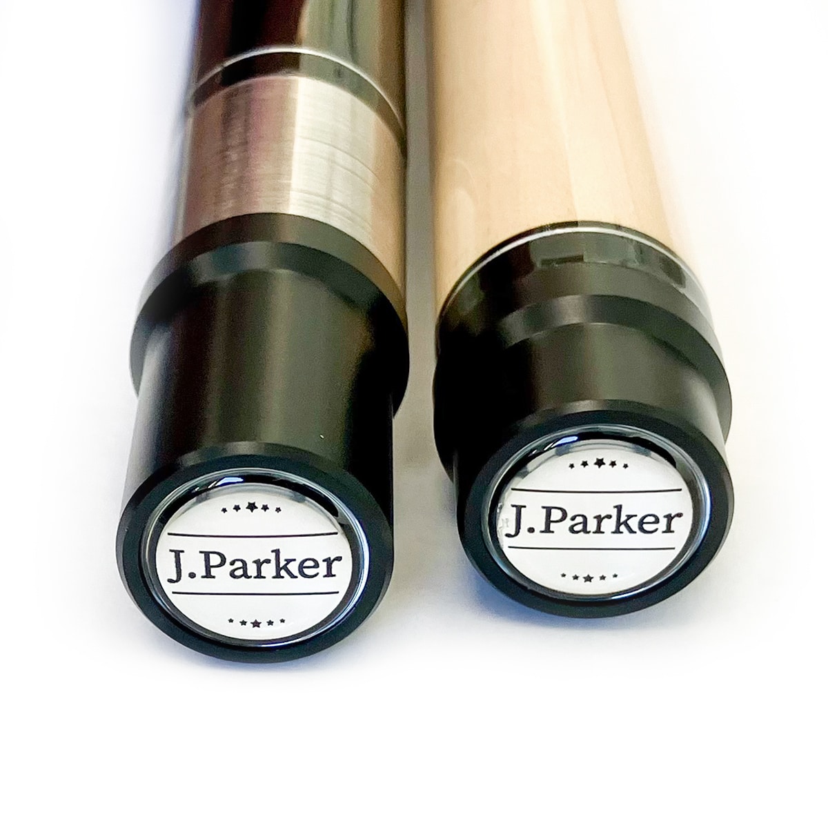 Unglaublich wie kreativ und mit einzigartig geschmackvollen Design diese Pool-Queues verarbeitet wurden. Mit viel Liebe zum Detail werden in der Produktion die ausgewählten Ahorn-Hölzer mit den edlen Materialien und Edelholzdekoren sorgfältig mit viel Handarbeit miteinander verbunden. Das Oberteil ist sehr fein gemasert und von der Flexibilität als „medium-hart“ eingestuft. Damit eignet sich der Queue nicht nur als „Spielqueue“, sondern auch gleichzeitig sehr gut zum „Anstoßen“ (sog. Break). Wie es der Großteil der Profispieler bevorzugt, wurde auch bei J. Parker der Griffbereich mit einem hochwertigen Leinenband umwickelt.