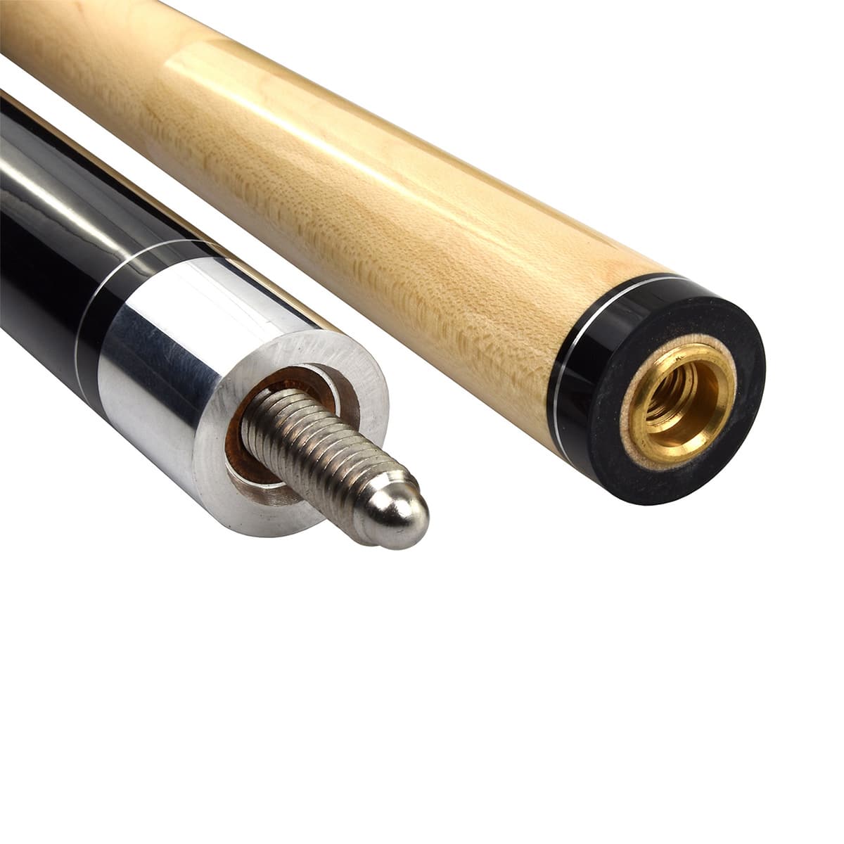 Das mittelharte kanadische Ahornoberteil ist mit einer Fiber Ferrule und einem 13 mm Klebeleder Le Professional ausgestattet das bereits geformt und spielfertig aufgeraut ist. Die Verbindung mit dem Unterteil erfolgt durch einen Edelstahl Joint mit präzisem Feingewinde 5/16 x 18. Der Griffbereich ist mit einem hochwertigen schwarz/weißen Leinenband versehen.