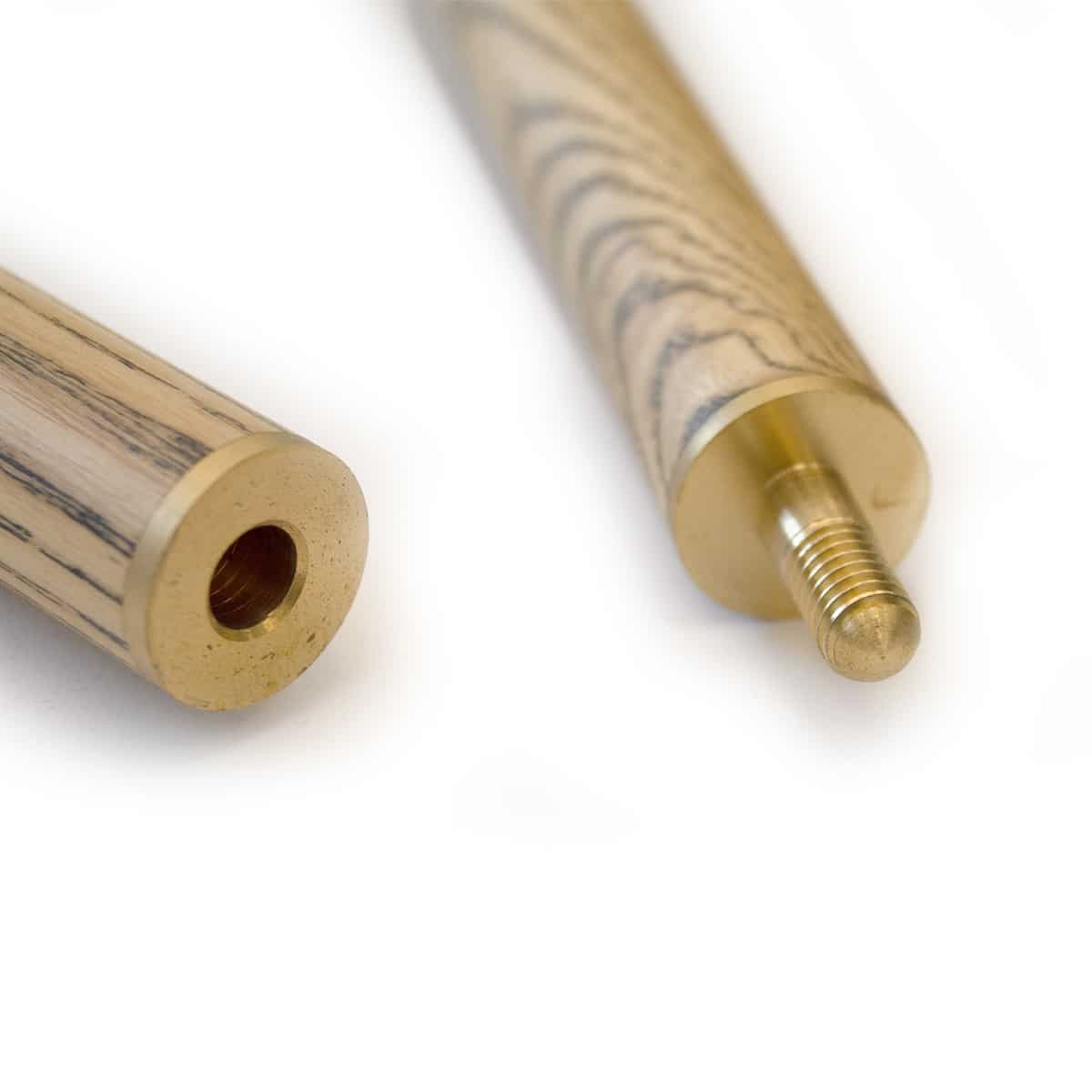 geteilt und mit einem präzisem Messing-Feingewinde verbunden. Im unteren