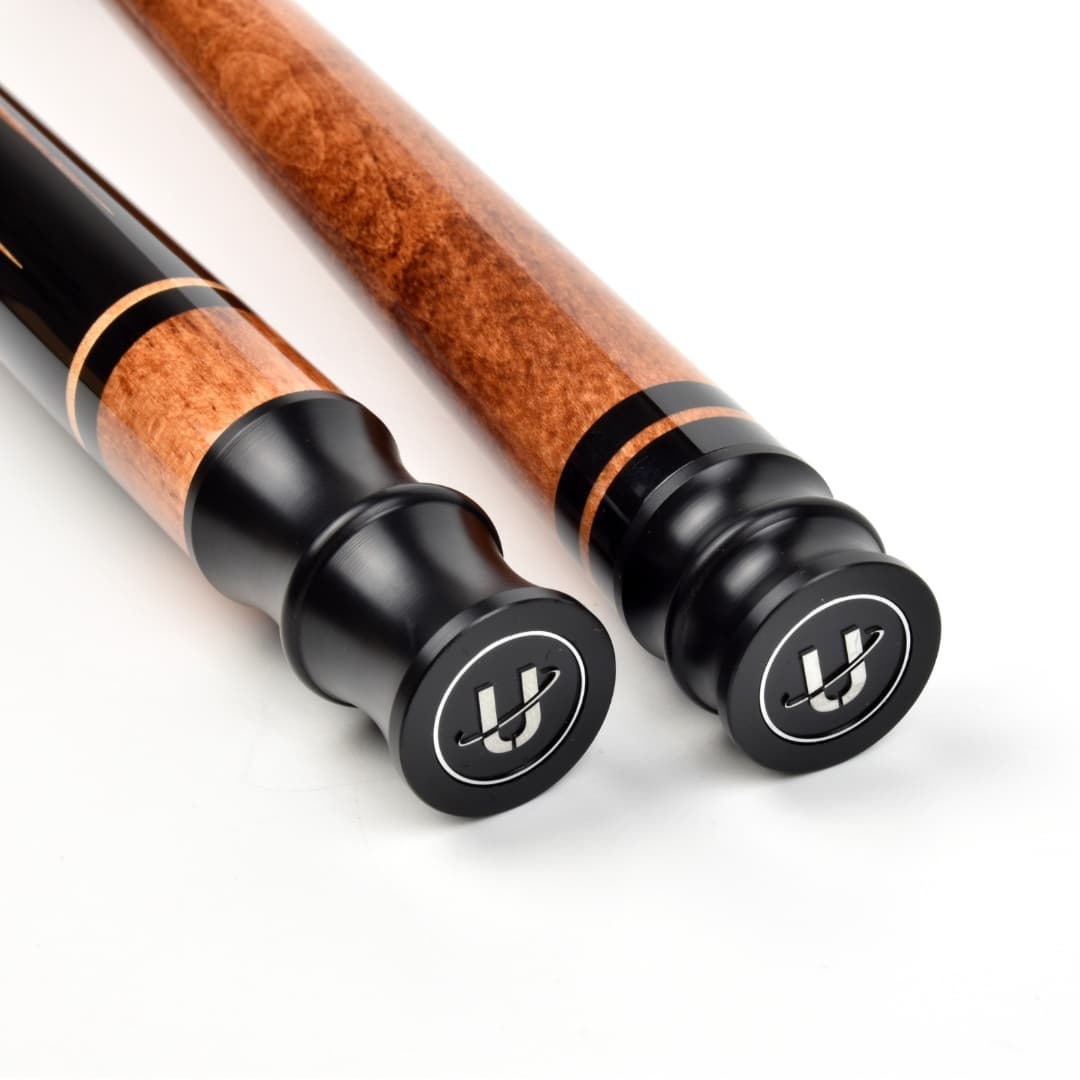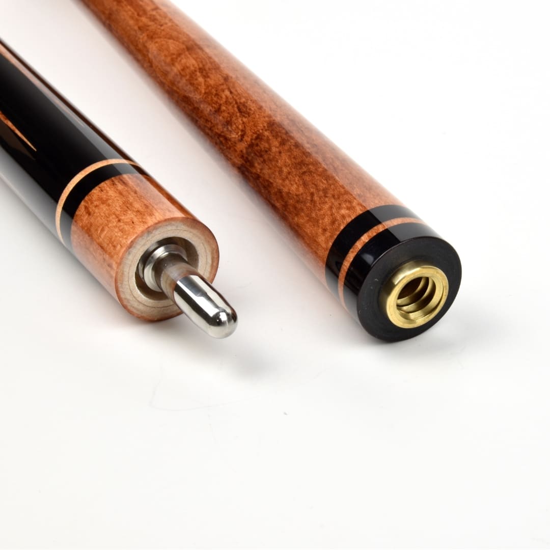Exklusiv für Winsport wurde das Oberteil passend in derselben Holzfarbe Rengas-braun gebeizt wie die Einlagen im Unterteil. Das ist einmalig schön gelungen und macht jeden Queue zu einem Unikat.