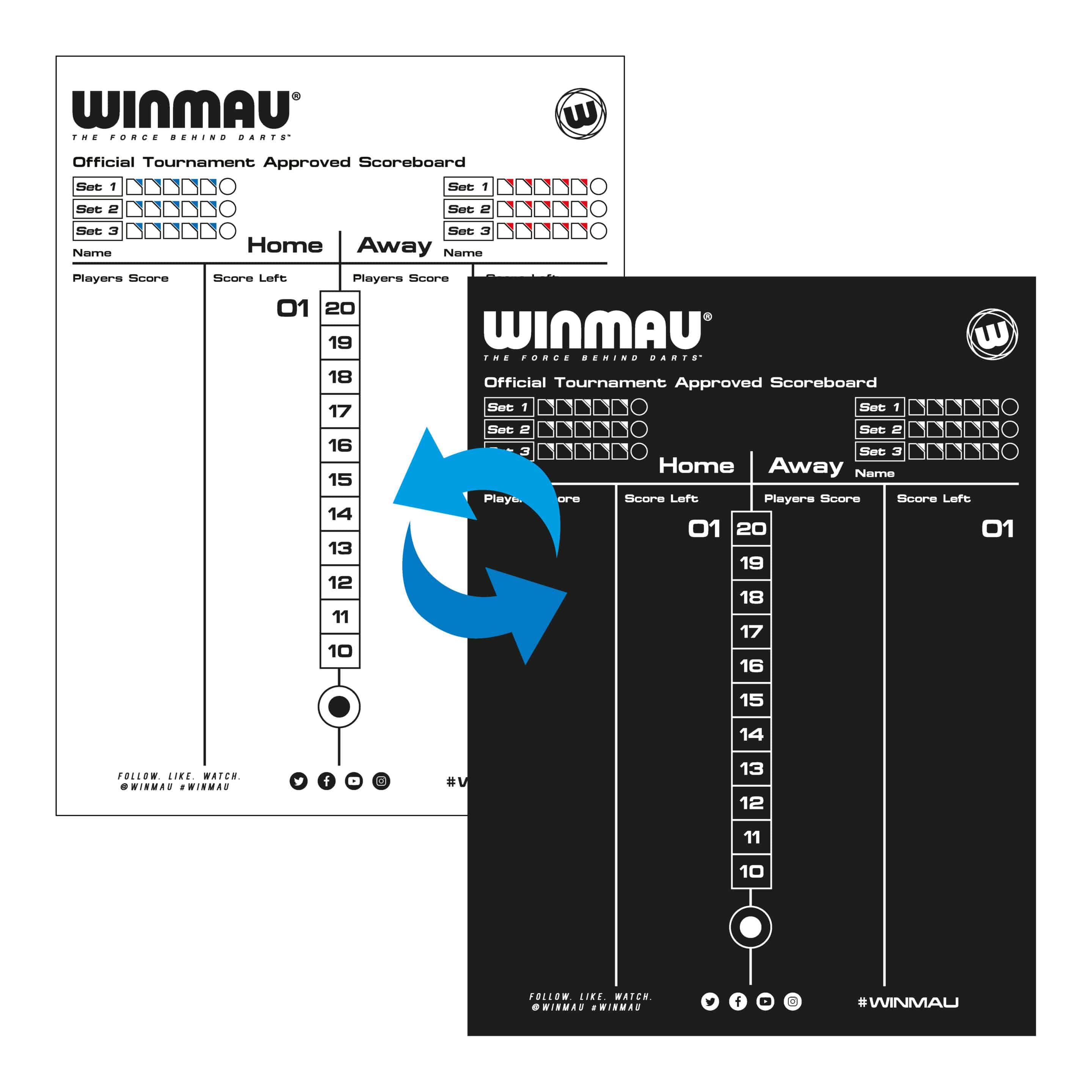 Das offizielle Winmau Scoreboard kann beidseitig benutzt werden. Vorne als „White-Board“ bei dem die Ergebnisse wieder trocken abgewischt werden können und Rückseite als traditionelle schwarze Kreidetafel. Die große praktische Zähltafel ist geeignet für alle gängigen Spiele wie 301 und 501 sowie Cricket und wird turniermäßig von der Britisch Dart Organisation offiziell eingesetzt. Inklusive 2 schwarzen Schreibstiften und einfacher Wandbefestigung.