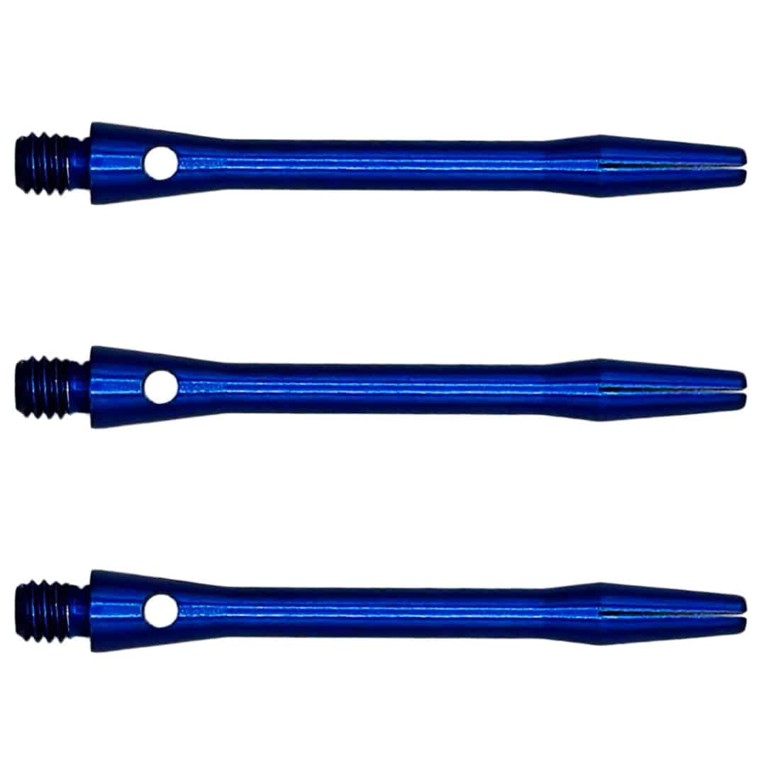Shafts aus Aluminium gelten als die stabilsten Verbindungen zwischen Barrel und Flight. Selbst einem Treffer durch eine Metallspitze hält der Shaft stand. Auch das Gewinde ist robuster als bei Kunststoff oder Nylon-Shafts. Das bruchsichere Aluminium hat einen präzisen, engen Schlitz für die Flights. Passend für alle Formen und alle gängigen Flight-Stärken von 75 bis 125 Mic. Der Shaft ist mit dem Standard 2BA-Kleingewinde