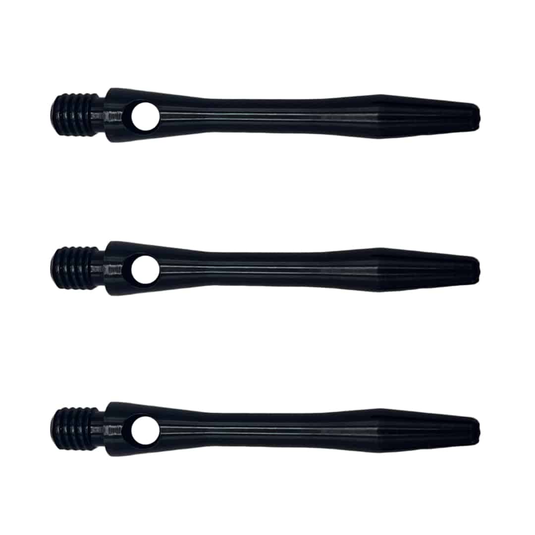 Shafts aus Aluminium gelten als die stabilsten Verbindungen zwischen Barrel und Flight. Selbst einem Treffer durch eine Metallspitze hält der Shaft stand. Auch das Gewinde ist robuster als bei Kunststoff oder Nylon-Shafts. Das bruchsichere Aluminium hat einen präzisen, engen Schlitz für die Flights. Passend für alle Formen und alle gängigen Flight-Stärken von 75 bis 125 Mic. Der Shaft ist mit dem Standard 2BA-Kleingewinde
