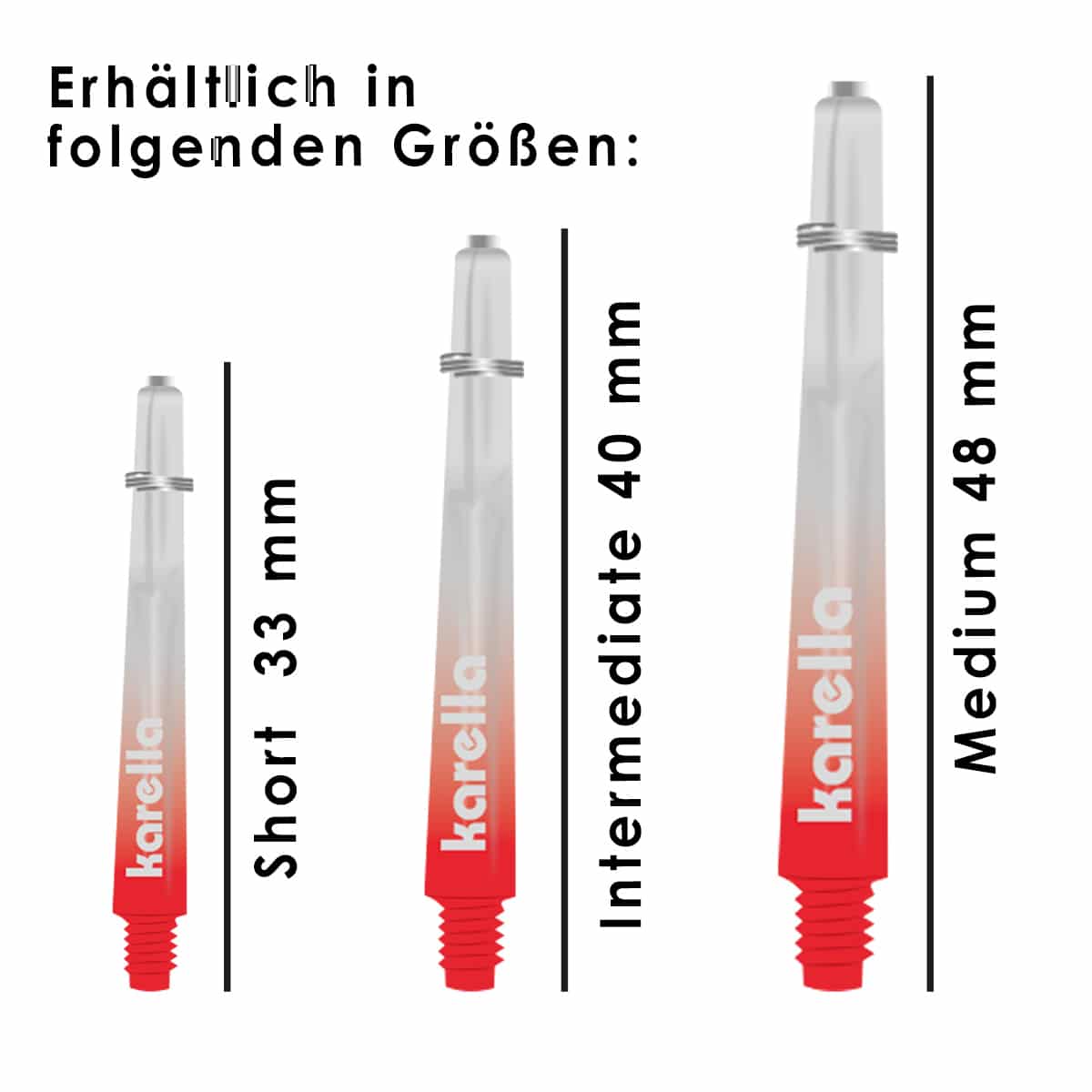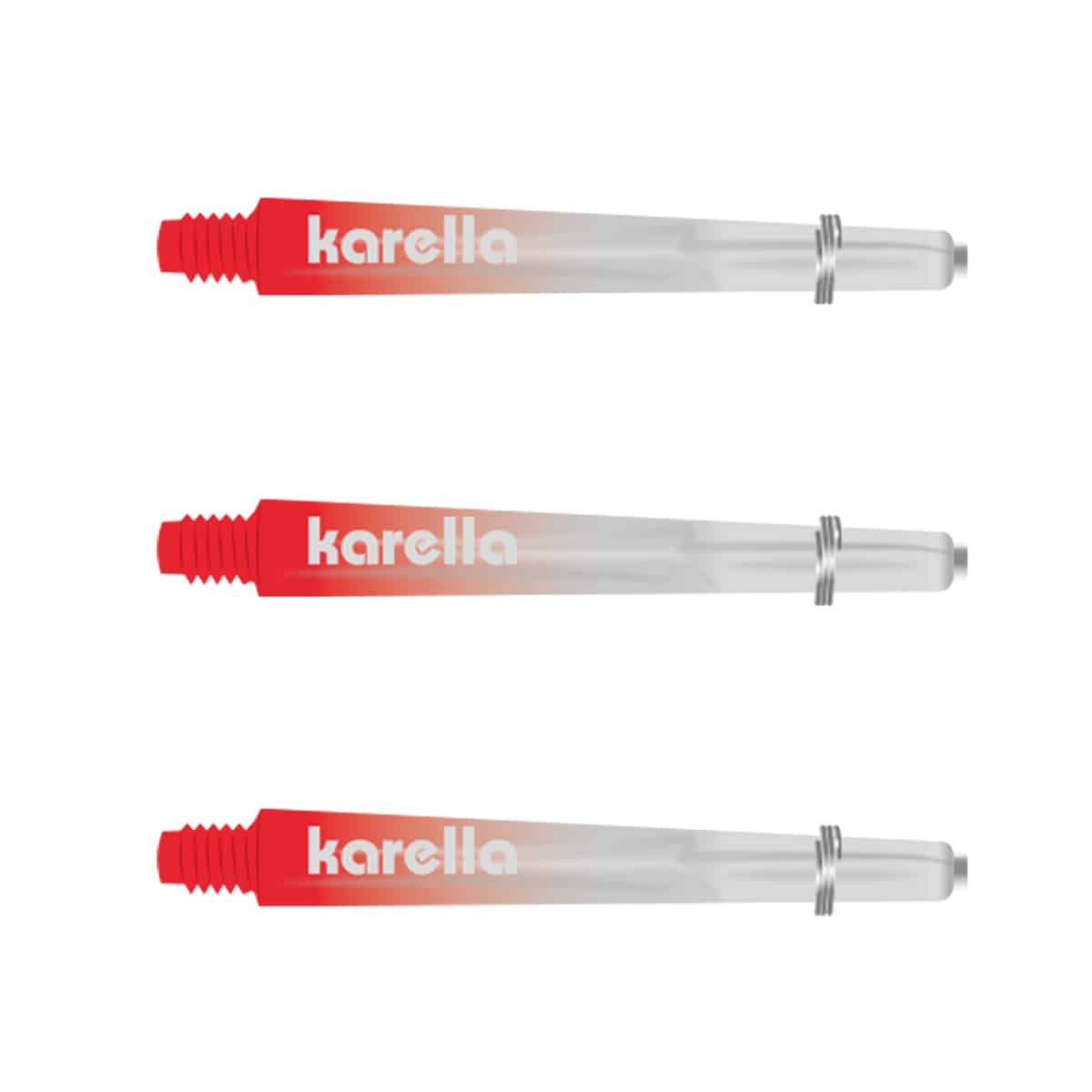 Aus einer speziellen Polycarbonat/Kunststoffmischung werden die Comic Shafts aus dem Hause Karella produziert. Sie sind etwas leichter als aus Aluminium und elastischer und sorgen für exzellente Flugeigenschaften. Man muss jedoch wissen, dass Shafts Verschleißmaterial sind und beim herunterfallen am Gewinde brechen können. Ebenso kann der Treffer einer Metallspitze sie beschädigen. Daher empfiehlt es sich immer ein paar Shafts in Reserve zu haben. Die Karella Comic Shafts mit dem gängigen 2BA-Kleingewinde sitzen präzise perfekt im Barrel. Sie sind mit einem zusätzlichen Edelstahl Schutzring am Schlitzende ausgestattet der den Shaft umschließt und zusätzlich für sicheren Halt aller gängigen Stärken der Flights sorgt. Ein stylischer Farbverlauf ins Durchsichtige bringt bei diesen Shafts Farbe ins Spiel.