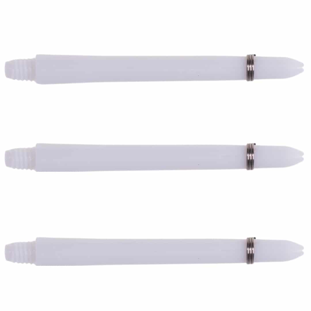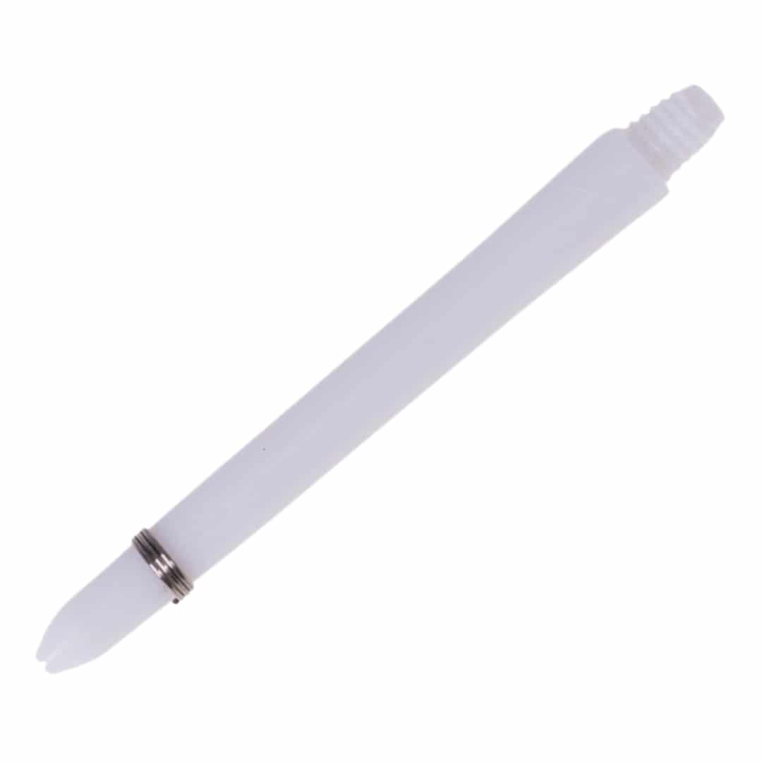 Shafts aus Nylon gehören zu den gängigsten und beliebtesten Verbindungen zwischen dem Barrel und dem Flight. Sie sind etwas leichter als aus Aluminium und elastischer. Man muss jedoch wissen, dass Shafts Verschleißmaterial sind und beim Herunterfallen am Gewinde brechen können. Ebenso kann der Treffer einer Metallspitze sie beschädigen. Daher empfiehlt es sich immer ein paar Shafts in Reserve zu haben. Die Nylon Shafts mit dem gängigen 2BA-Kleingewinde sitzen auch ohne zusätzlichen Gummiring perfekt im Barrel. Karella Nylon Shafts sind mit einem zusätzlichen Federring am Schlitzende ausgestattet. Dieser kleine Metallring umschließt den Shaft und verbessert den Halt des Flights.