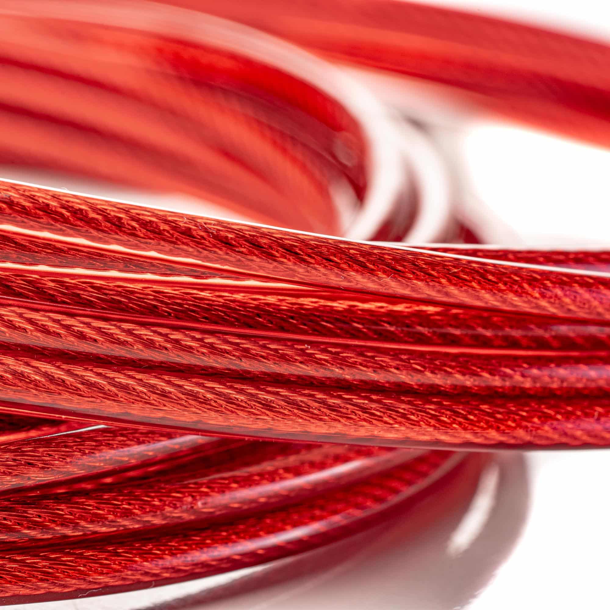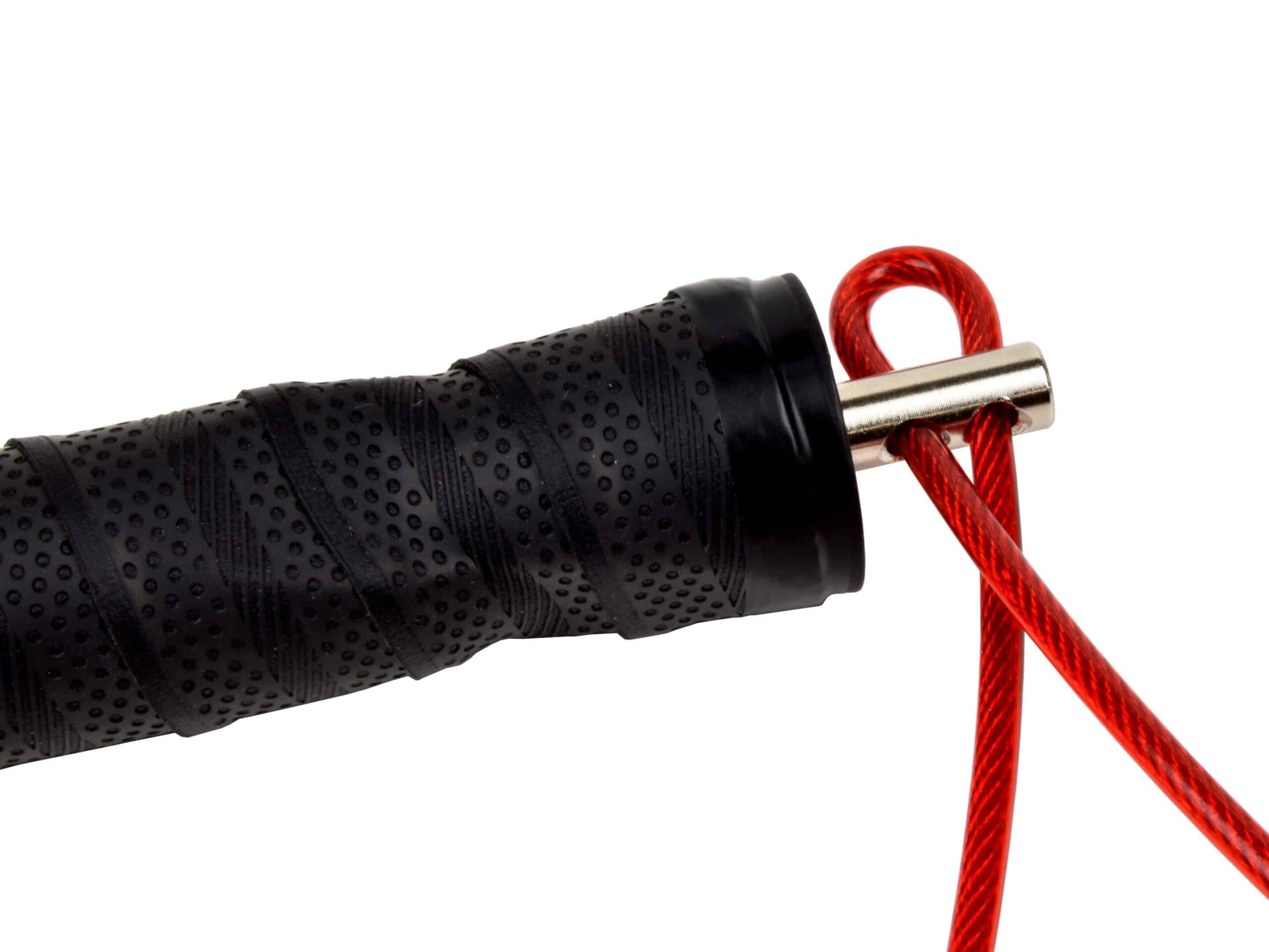 Das schöne rot/schwarze Springseil aus dem Hause Bandito, auch Jump-Rope genannt, erfüllt alles was der anspruchsvolle Sportler erwartet. Das professionelle Modell HiPower ist mit leichtgängigen langlebigen Kugellagern ausgestattet. Das Seil besteht aus einem geflochtenen Aluminium das zum Schutz mit weichem Kunststoff überzogen ist.