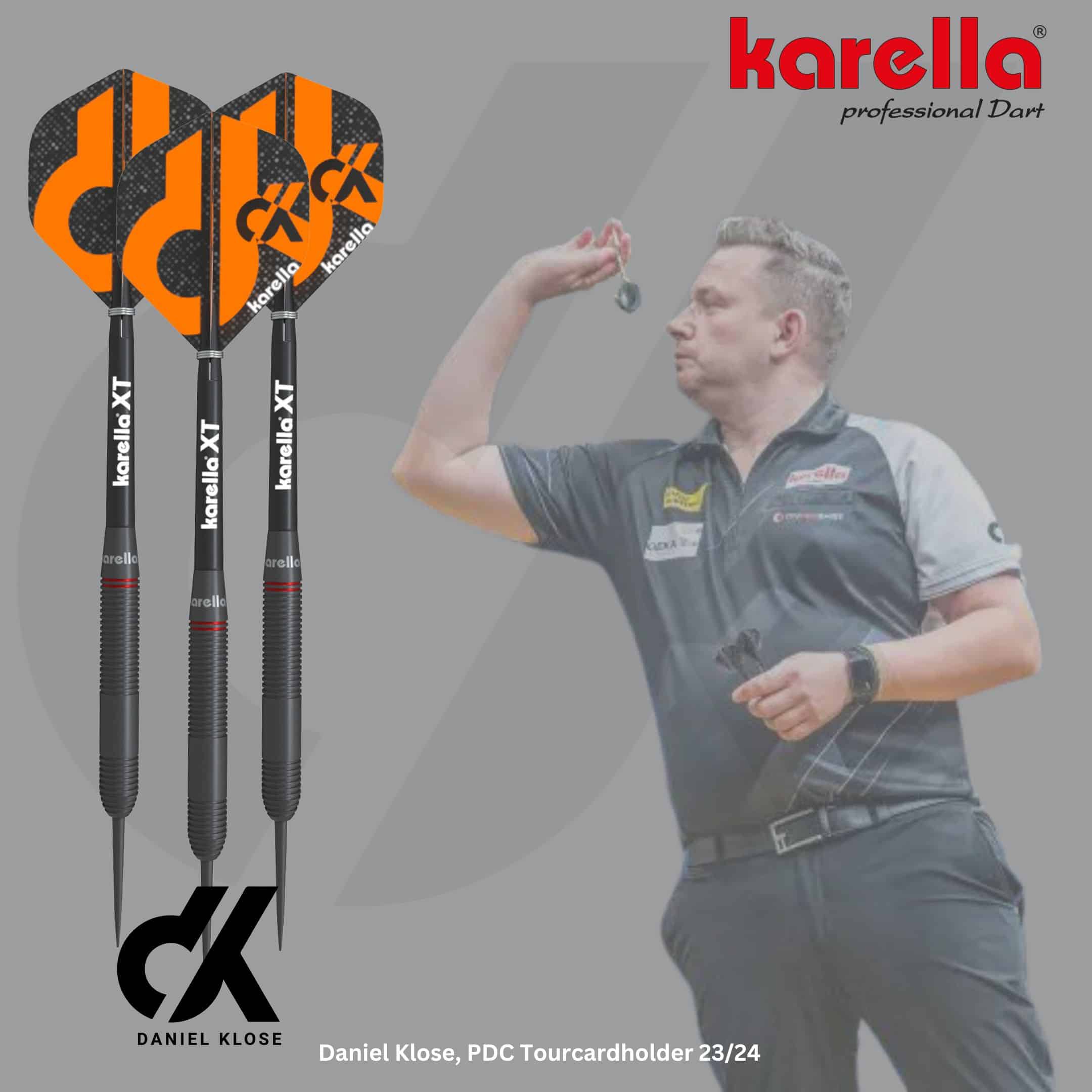 Das Dartset wird mit den Karella XT Shafts (Intermediate) sowie 2 Satz Profi Flights im Daniel Klose Design geliefert. Der Steeldart Daniel Klose ist in den Gewichten