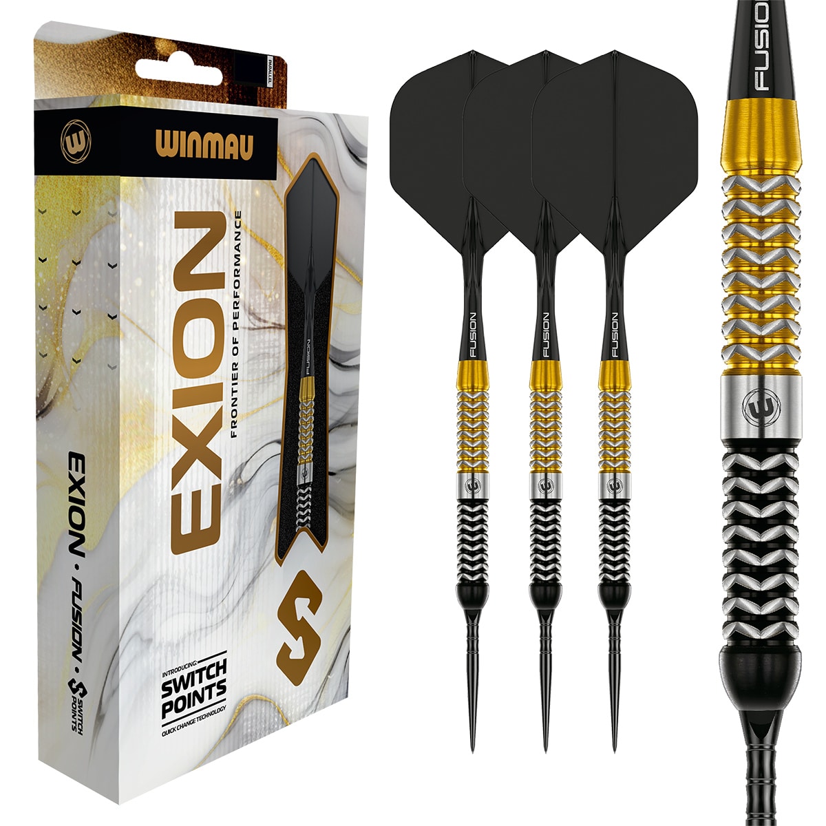 Die Winmau Exion Darts aus der Frontier Collection vereinen präzise Ausrichtung und kraftvolles Spiel. Inspiriert von der Anordnung dreier strahlender Sterne, spiegelt ihr schwarz-gold-schwarzes Barrel-Design himmlische Symmetrie wider. Dank Fusion- und Switch-Points sowie Multi-Profile-Griffen bietet der Exion optimale Präzision und Kontrolle.