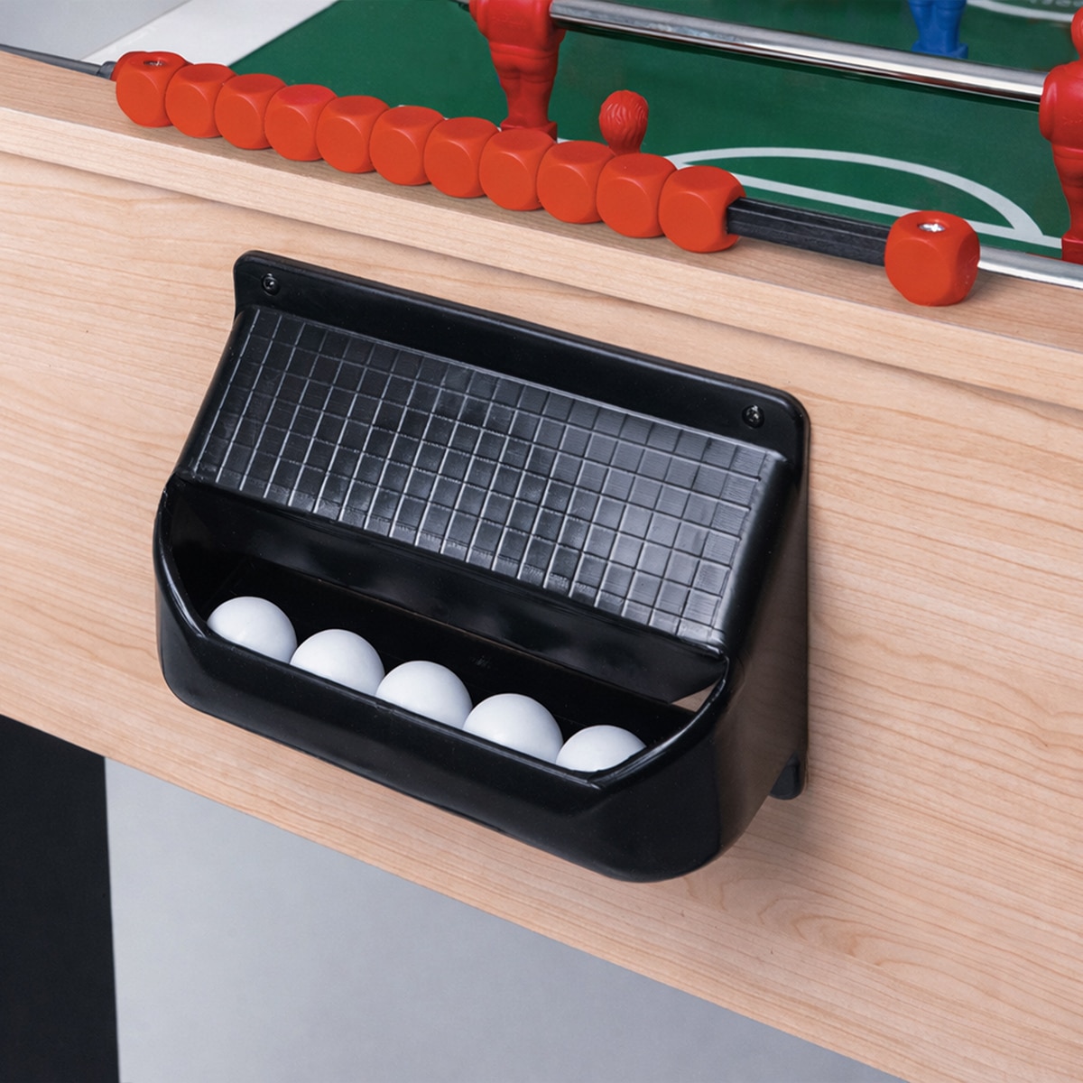 Ausgeliefert wird der Tischfußball mit 10 weißen Kickerbällen (33,1 mm). Der Korpus ist bereits vormontiert – einfach und schnelle Montage.