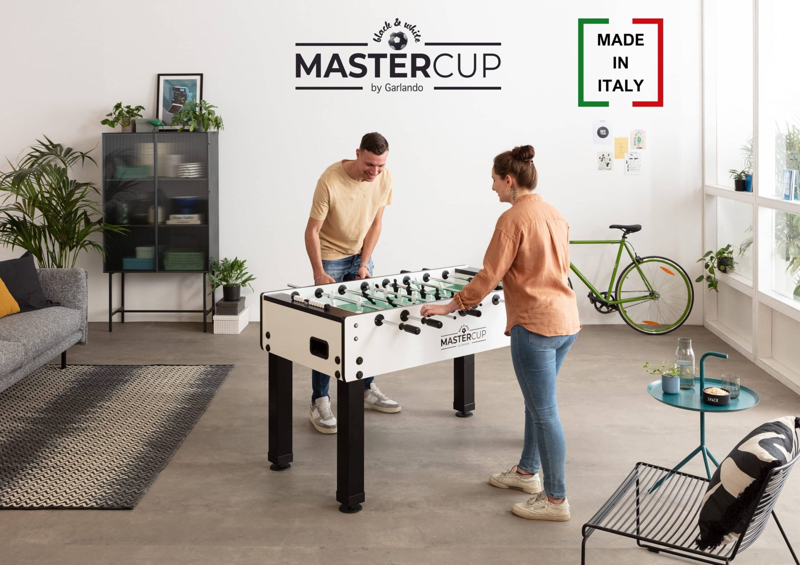 Das Modell Black & White, hergestellt von Garlando, Made in Italy. Garlando ist offizieller Partner des Weltverbandes ITSF und gehört mit über 70 Jahren Erfahrung zum weltweit führenden Produzenten professioneller Fußballkicker. Nationale sowie internationale Meisterschaften werden auf Kickertischen von Garlando ausgetragen.