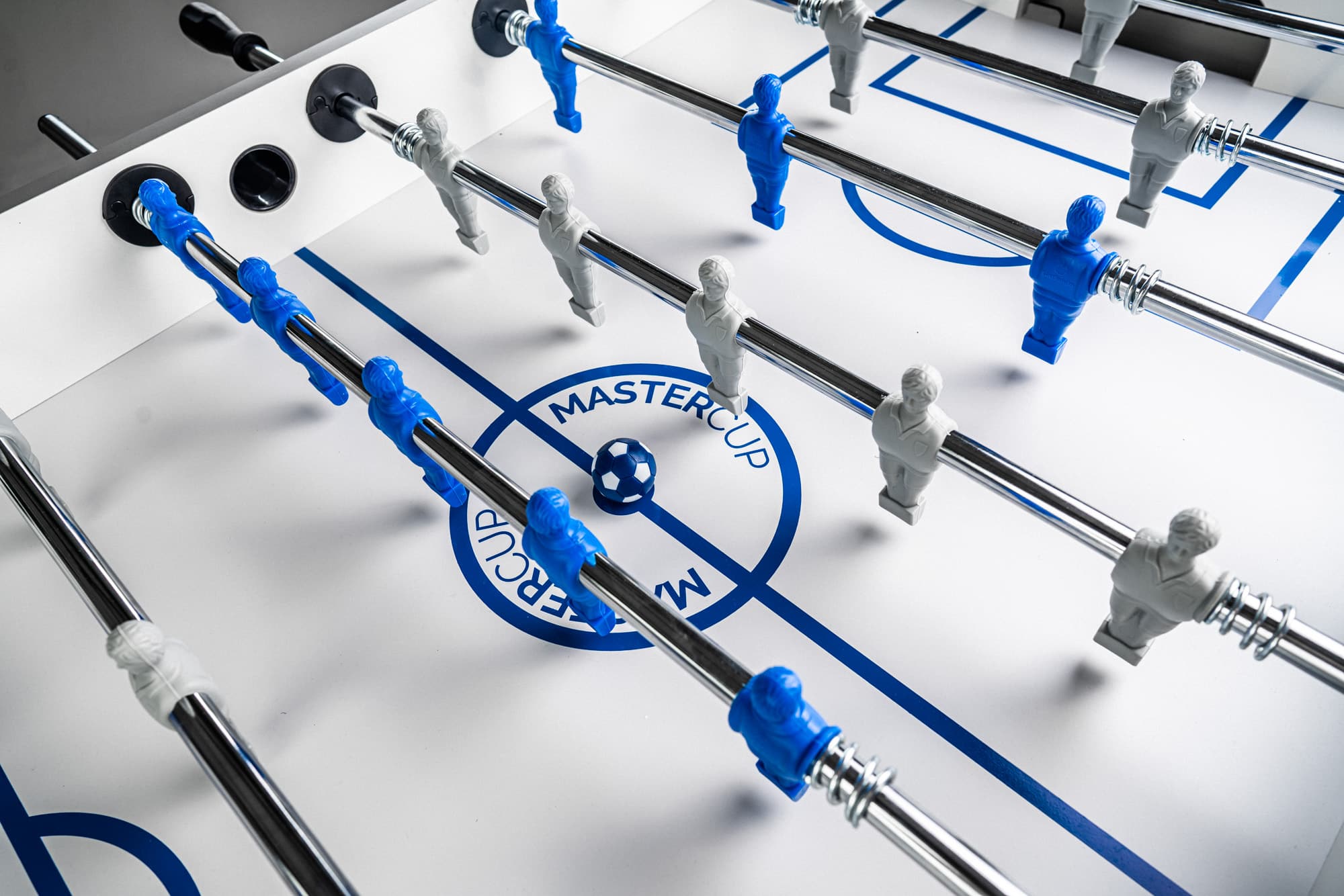 Das Modell MasterCup Foldy, hergestellt von Garlando, Made in Italy. Garlando ist offizieller Partner des Weltverbandes ITSF und gehört mit über 70 Jahren Erfahrung zum weltweit führenden Produzenten professioneller Fußballkicker. Nationale sowie internationale Meisterschaften werden auf Kickertischen von Garlando ausgetragen.