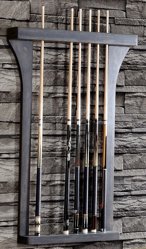 Ein wunderschöner Wandhalter, passend zu Billardtisch Premium. Das Finish besteht aus „Driftwood“ Optik (dunkelgrau-rauchfarben gebeizt). Hergestellt aus bestem Massivholz (Vollholz)