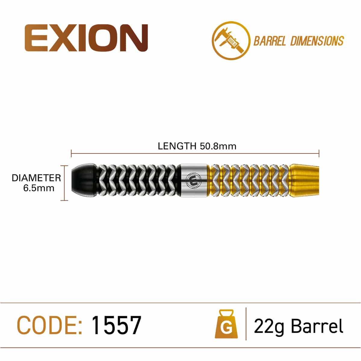 Die Winmau Exion Darts aus der Frontier Collection vereinen präzise Ausrichtung und kraftvolles Spiel. Inspiriert von der Anordnung dreier strahlender Sterne, spiegelt ihr schwarz-gold-schwarzes Barrel-Design himmlische Symmetrie wider. Dank Fusion- und Switch-Points sowie Multi-Profile-Griffen bietet der Exion optimale Präzision und Kontrolle.