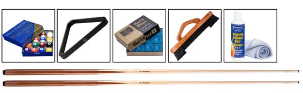 LieferumfangKugeln Pool 57.2 mm Super Aramith ProTriangel Robertson, schwarz, PoolKreide Robertson Gold Star sky-blue (12 Stk.)Billardbürste Robertson Ultimate mit Griff2 Queue einteilig A…